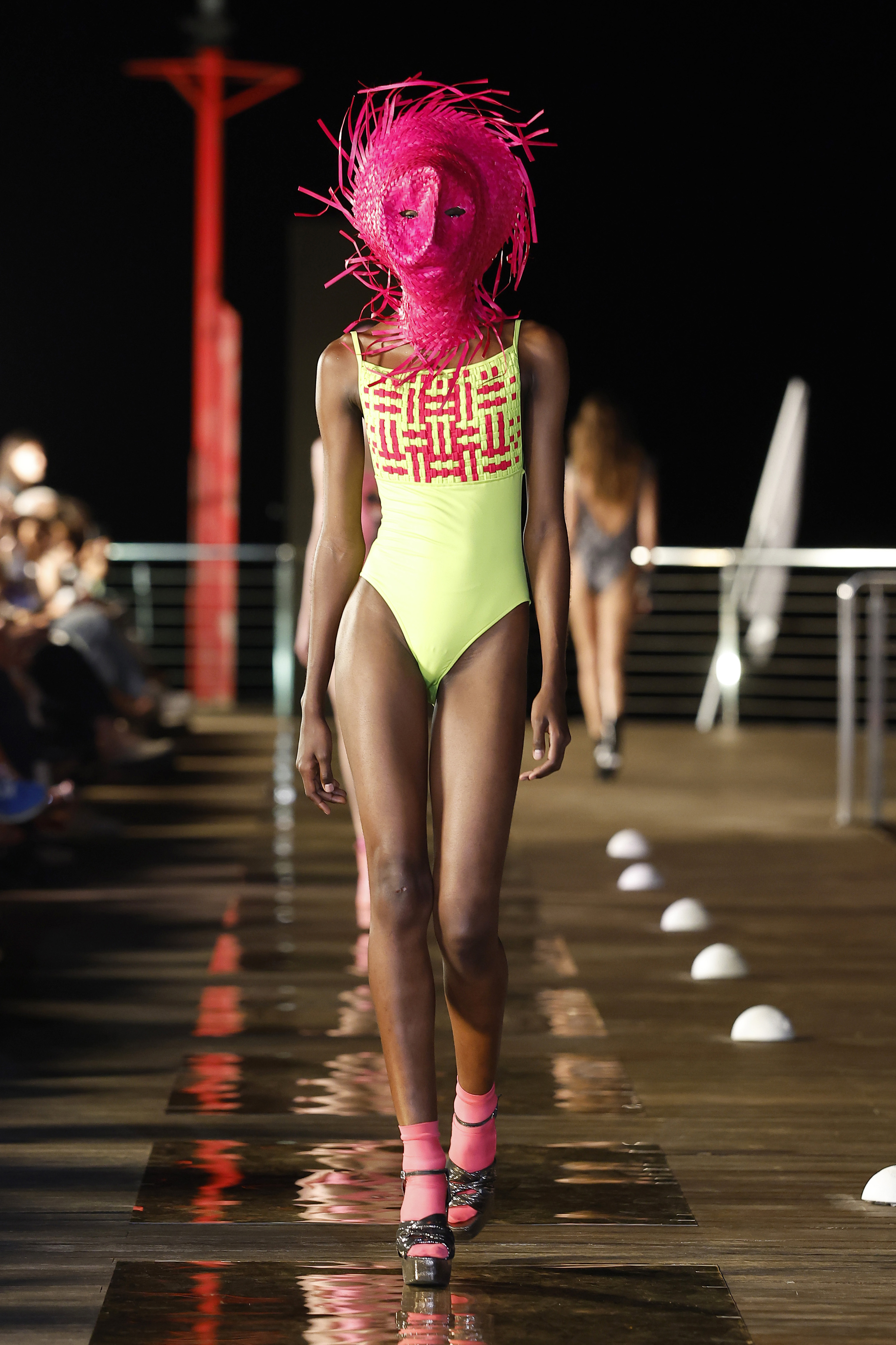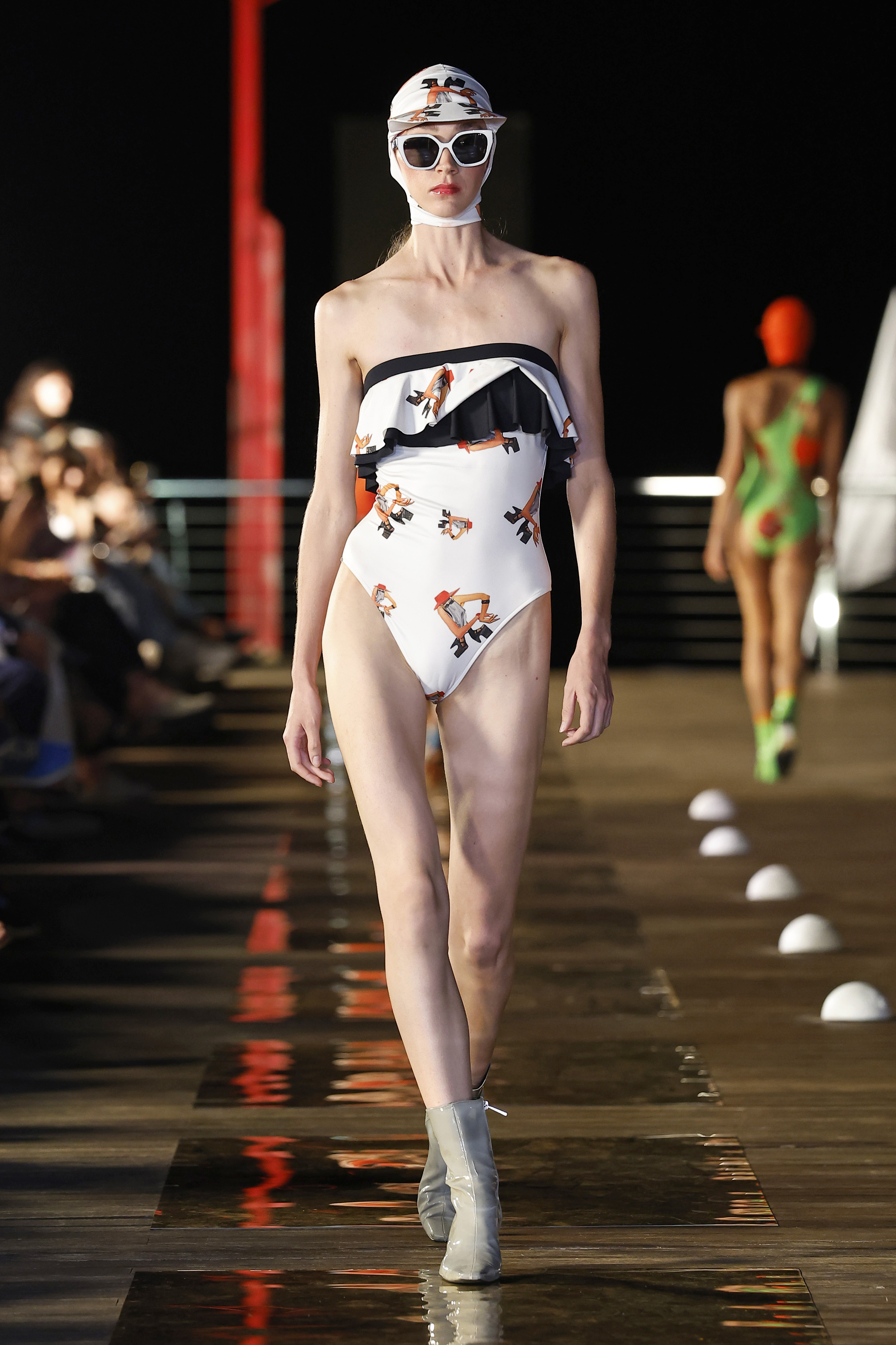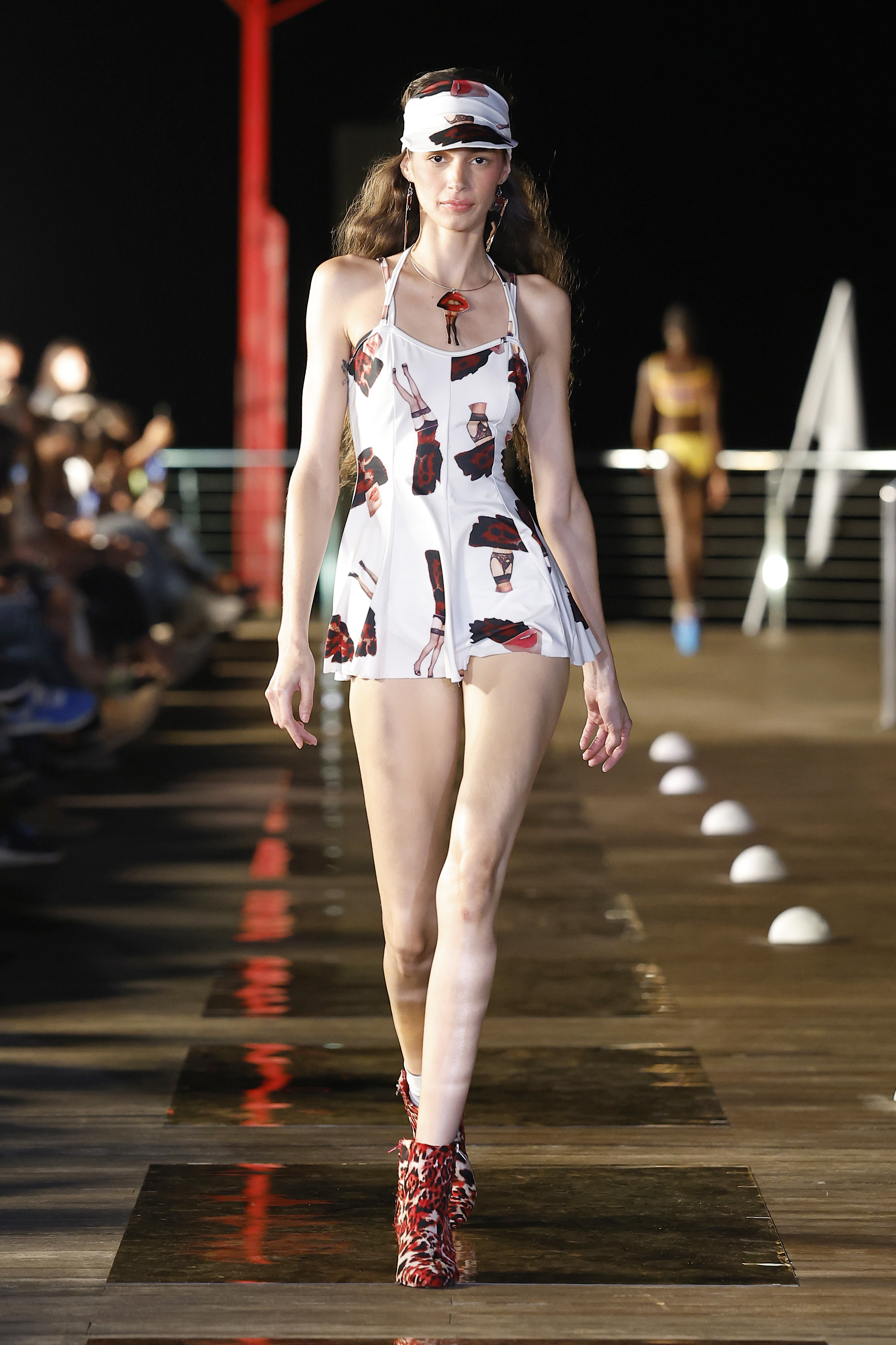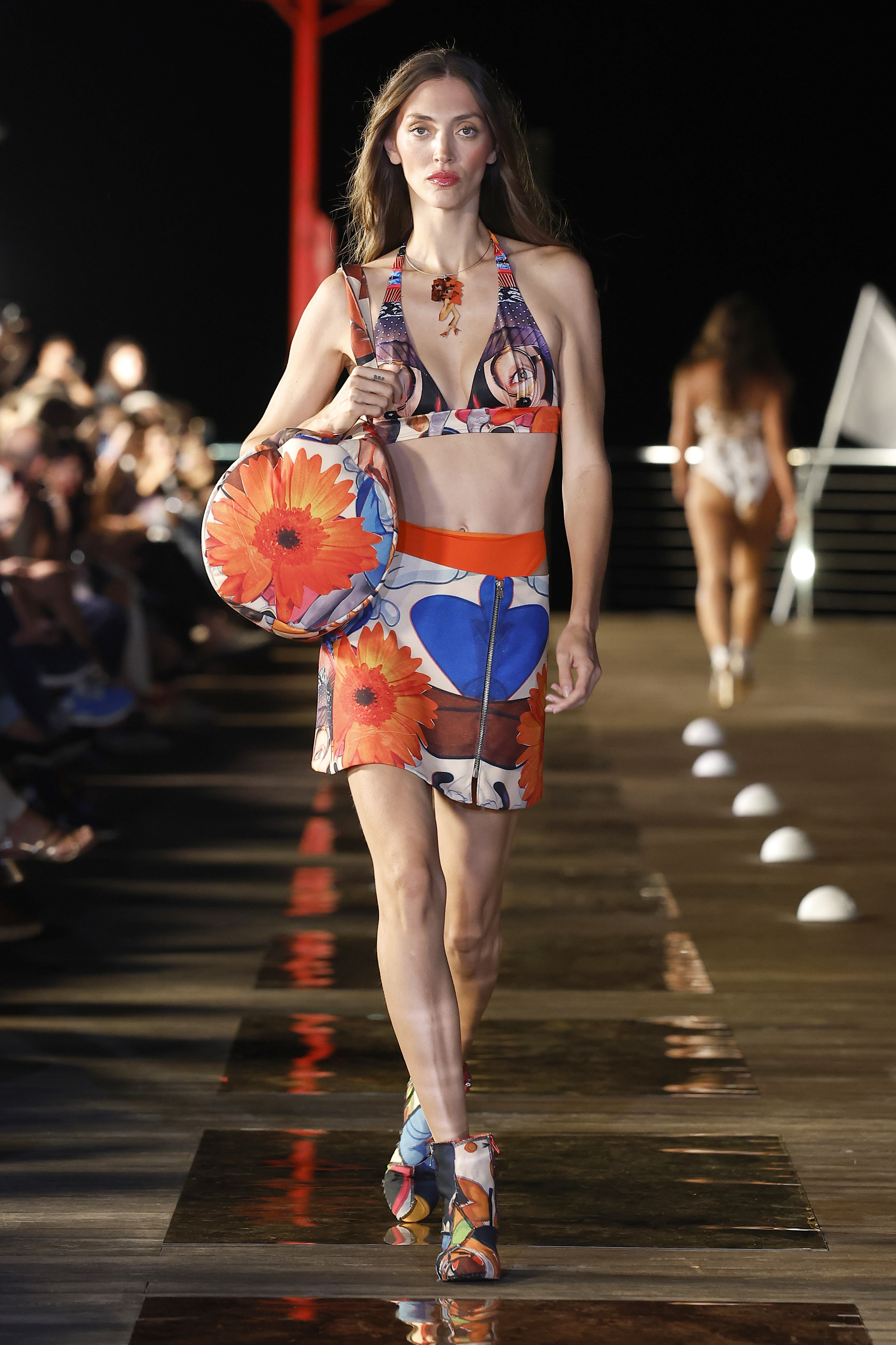 La idea para esta colección surge al encontrar en mi taller una prueba realizada hace años de un collage de Celeste González (titulado fan fatal) estampado en una pieza de licra, y una caja llena de flores de tela que guardo en el taller de cuando mi abuela las hacia para adornar mis bikinis. Esta fue la chispa que puso en marcha el motor de arranque de esta colección