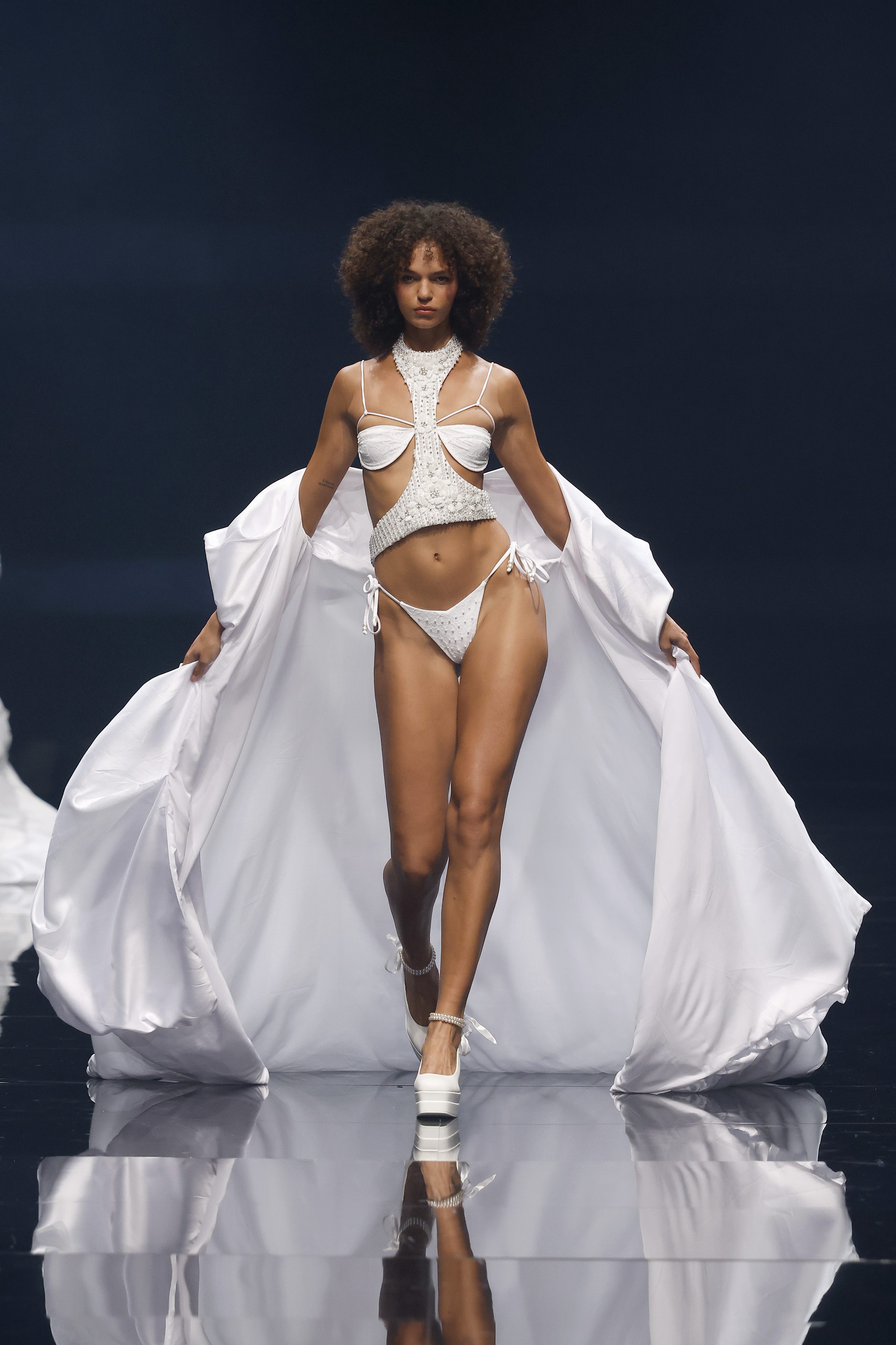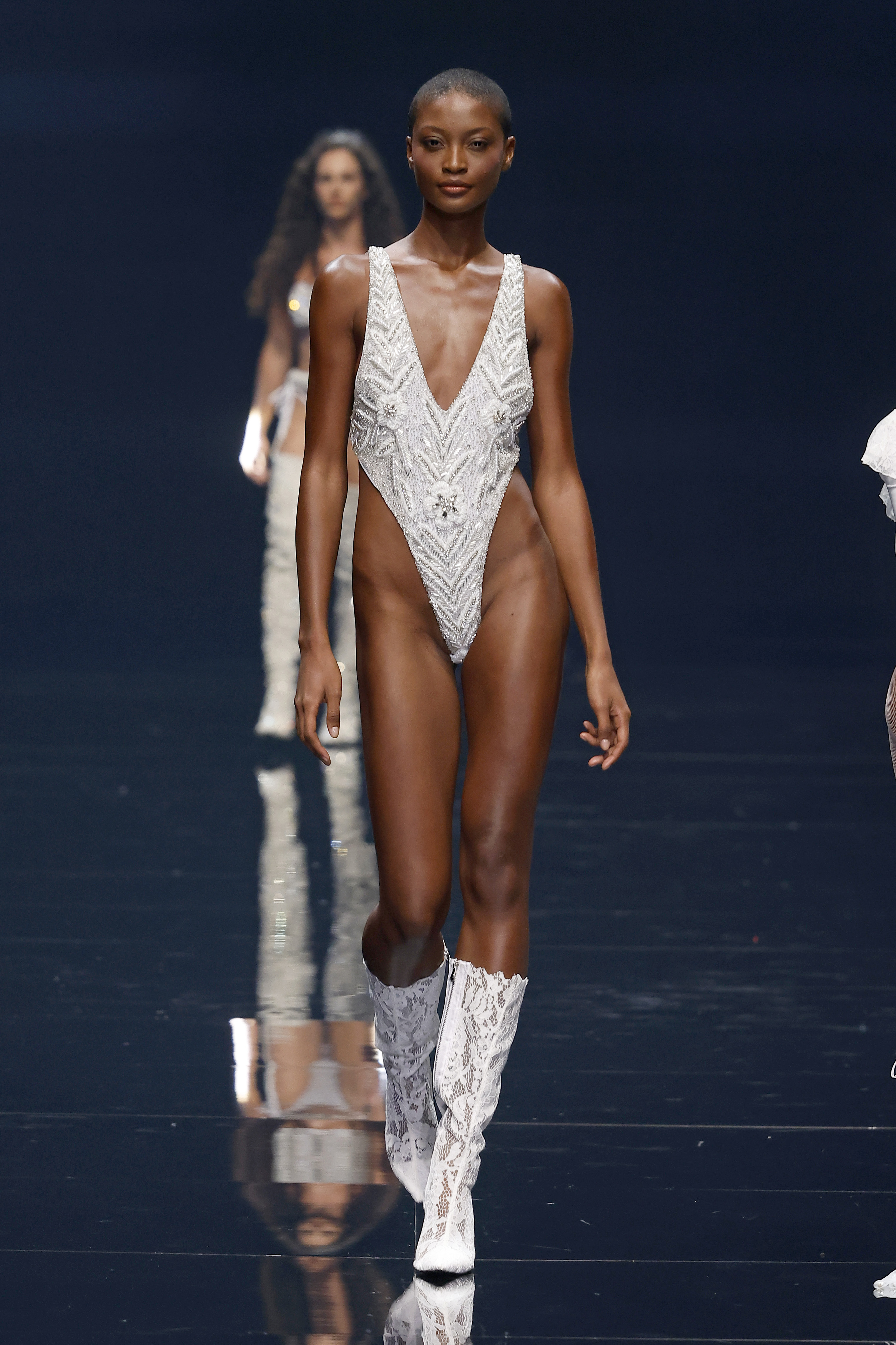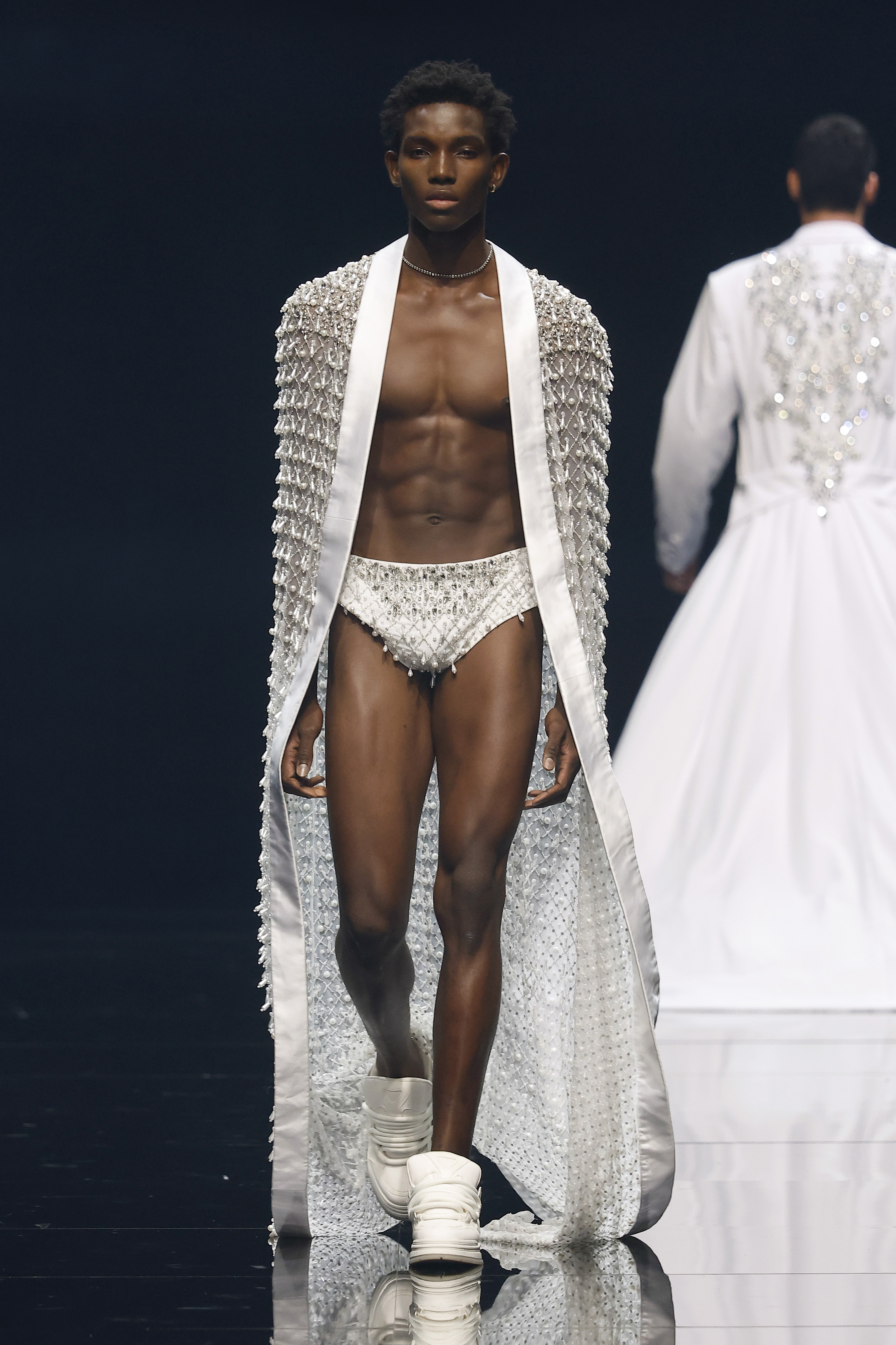 "Mi inspiración para Amour Oui proviene del romance eterno de los viajes y la poesía de las flores, y el poder transformador de la palabra más hermosa del amor: sí." Las flores, como símbolos eternos del amor—rosas para la pasión, lirios para la pureza, peonías para la devoción—se transforman delicadamente en encaje, bordados y detalles exquisitos que florecen en cada creación. En el corazón de la colección yace el momento del "Sí", ese latido en el que el amor se convierte en eterno, capturado en el brillo de las perlas, la suavidad de las sedas drapeadas y la complejidad del trabajo a mano. Cada pieza es una oda a la artesanía hecha a mano, celebrando la tradición atemporal de la alta costura, donde cada puntada es una carta de amor y cada detalle un recuerdo preciado.