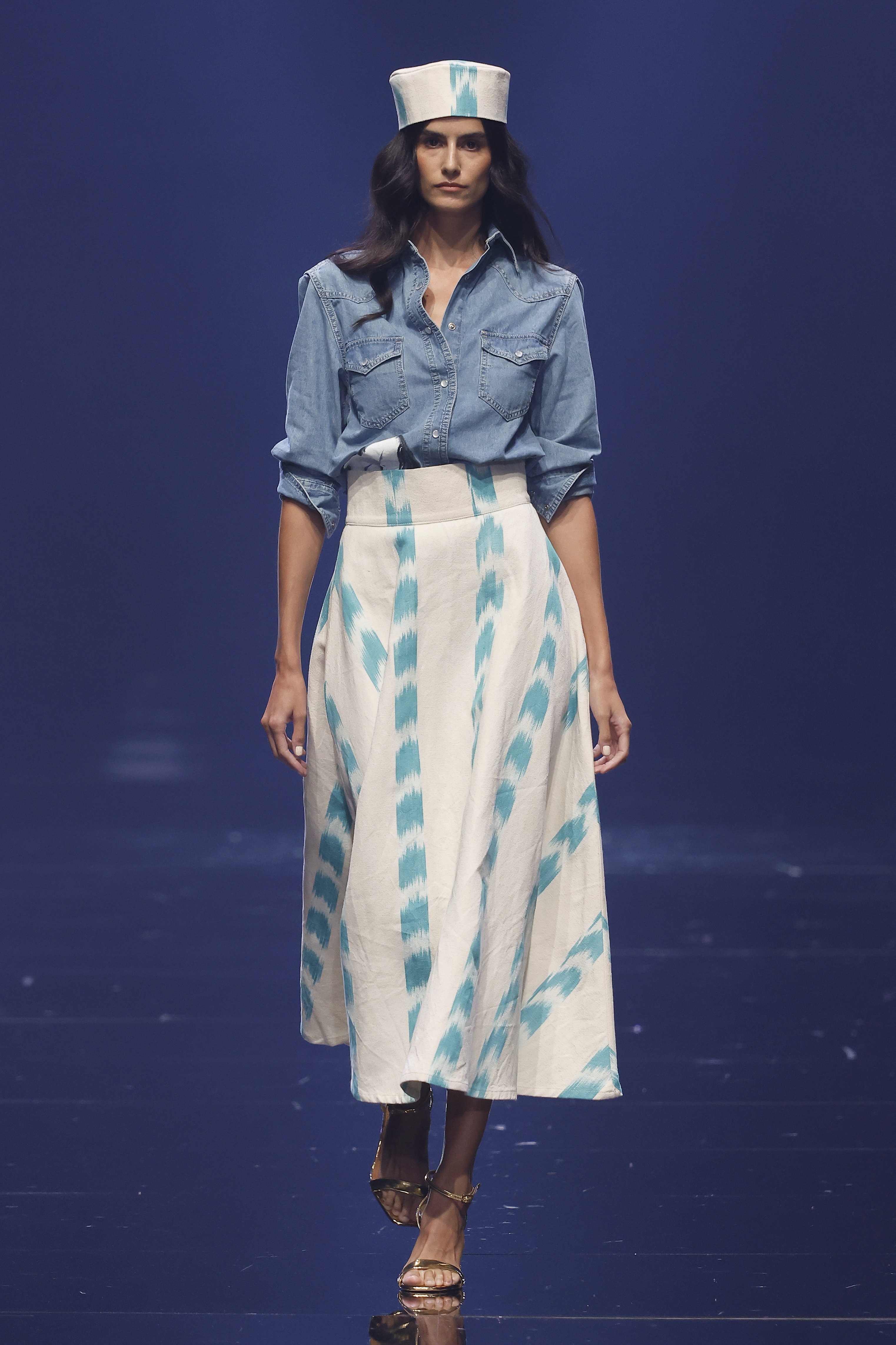 Una fusión de culturas, tejidos y texturas donde el color y las joyas heredadas de su madre dan vida a un estilismo étnico y sofisticado. Sobre Teixits Riera: Fundada en 1896 en Lloseta, Mallorca, Teixits Riera es la última fábrica artesanal de “telas de llengües”, un tejido icónico de la isla elaborado en telares tradicionales. Sus diseños atemporales reflejan la identidad cultural mallorquina y preservan un saber hacer transmitido durante generaciones