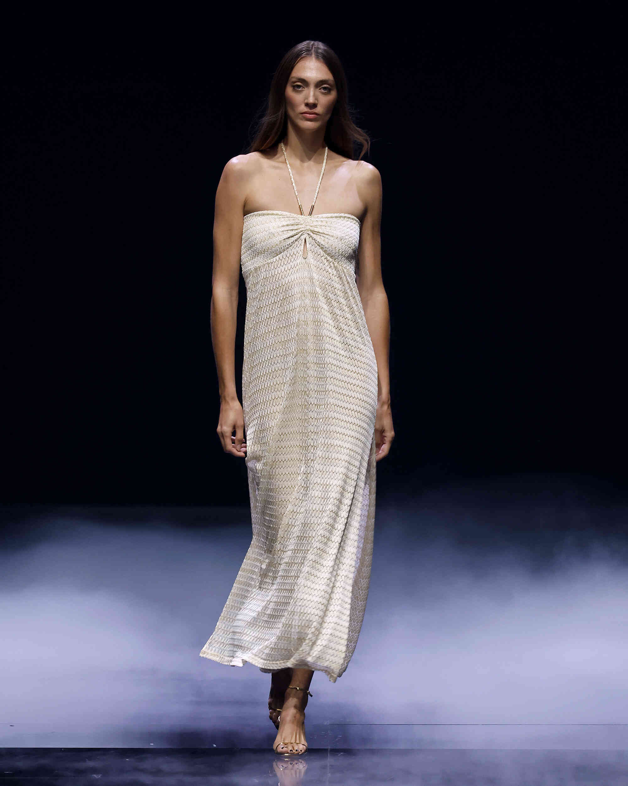 La colección Cruise 2026 de Melissa Odabash celebra 25 años de diseño icónico en moda de baño, inspirada en sus recuerdos de infancia en St. Martin y el glamour sin esfuerzo del estilo resort de los años 70. Presentada junto a piezas exclusivas de archivo, la colección combina una elegancia nostálgica con sofisticación contemporánea. Siluetas fluidas —maxis drapeados, caftanes ligeros y cubrecamisones tejidos— están confeccionadas con lujosas telas italianas, con detalles cosidos a mano y sutiles toques metálicos. Una paleta luminosa de pasteles, azules oceánicos y tonos dorados evoca el Caribe, mientras los estampados de guepardo y eslabones aportan un encanto atemporal.