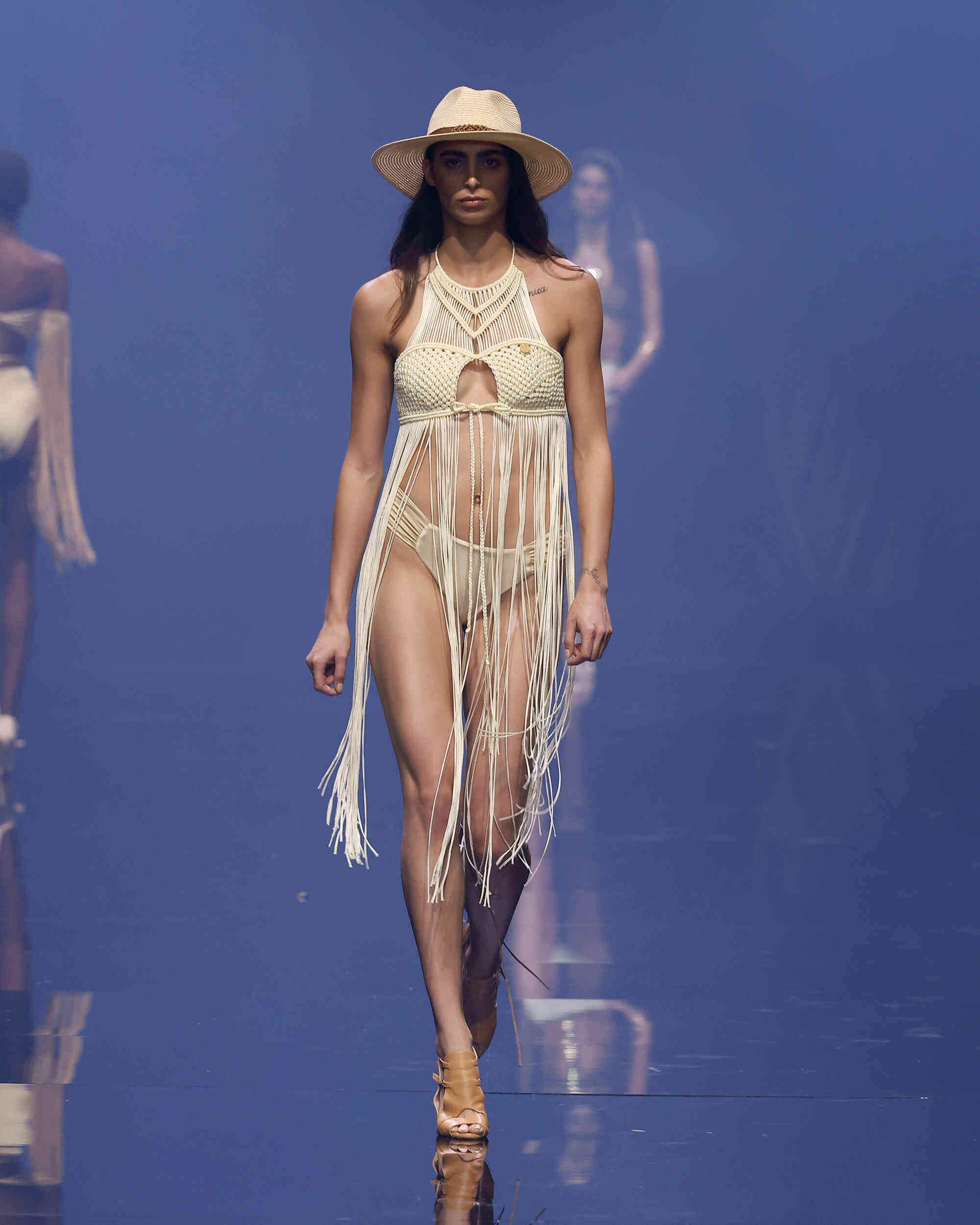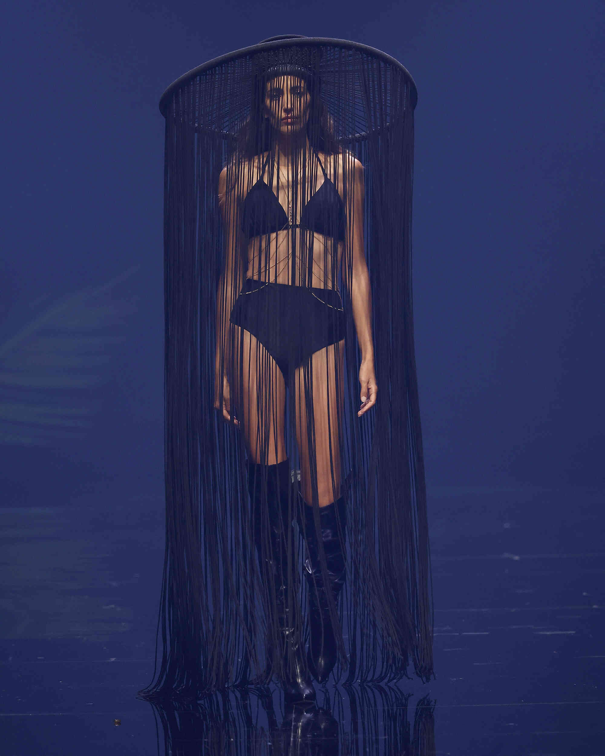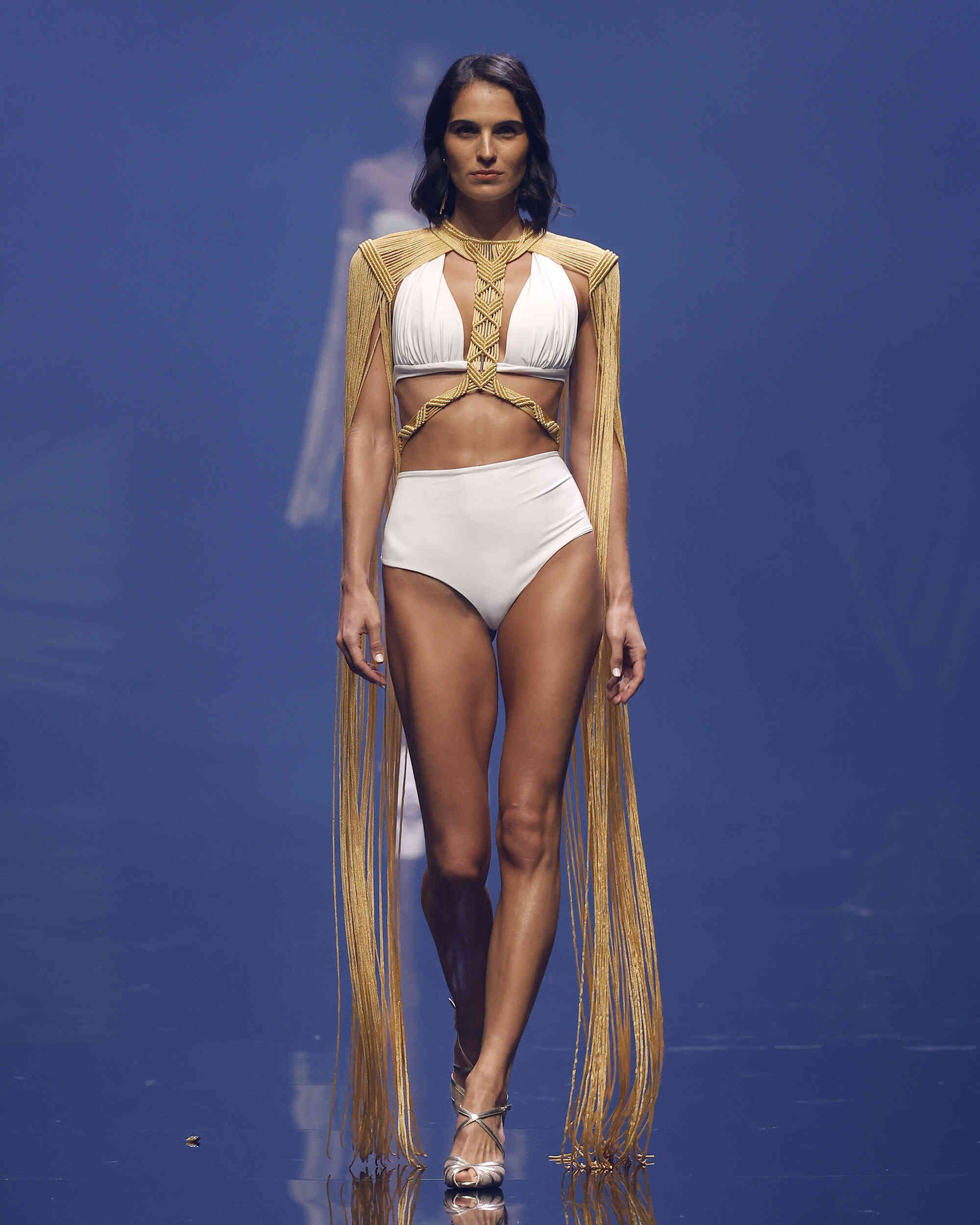 "Puesta de sol" es una colección que traduce en moda la transición poética del día hacia la noche. A través de colores, texturas y formas, cada look refleja un momento del atardecer. Se divide en tres bloques: Luz Dorada, con tonos suaves y cálidos; Fuego, que explora la intensidad del sol con rojos y naranjas vibrantes; y Crepúsculo, donde dominan los azules profundos y metálicos que evocan el misterio nocturno. Las siluetas son envolventes y superpuestas, sugiriendo introspección. La colección es una experiencia sensorial y visual donde la moda se convierte en arte que ilumina incluso en la oscuridad.