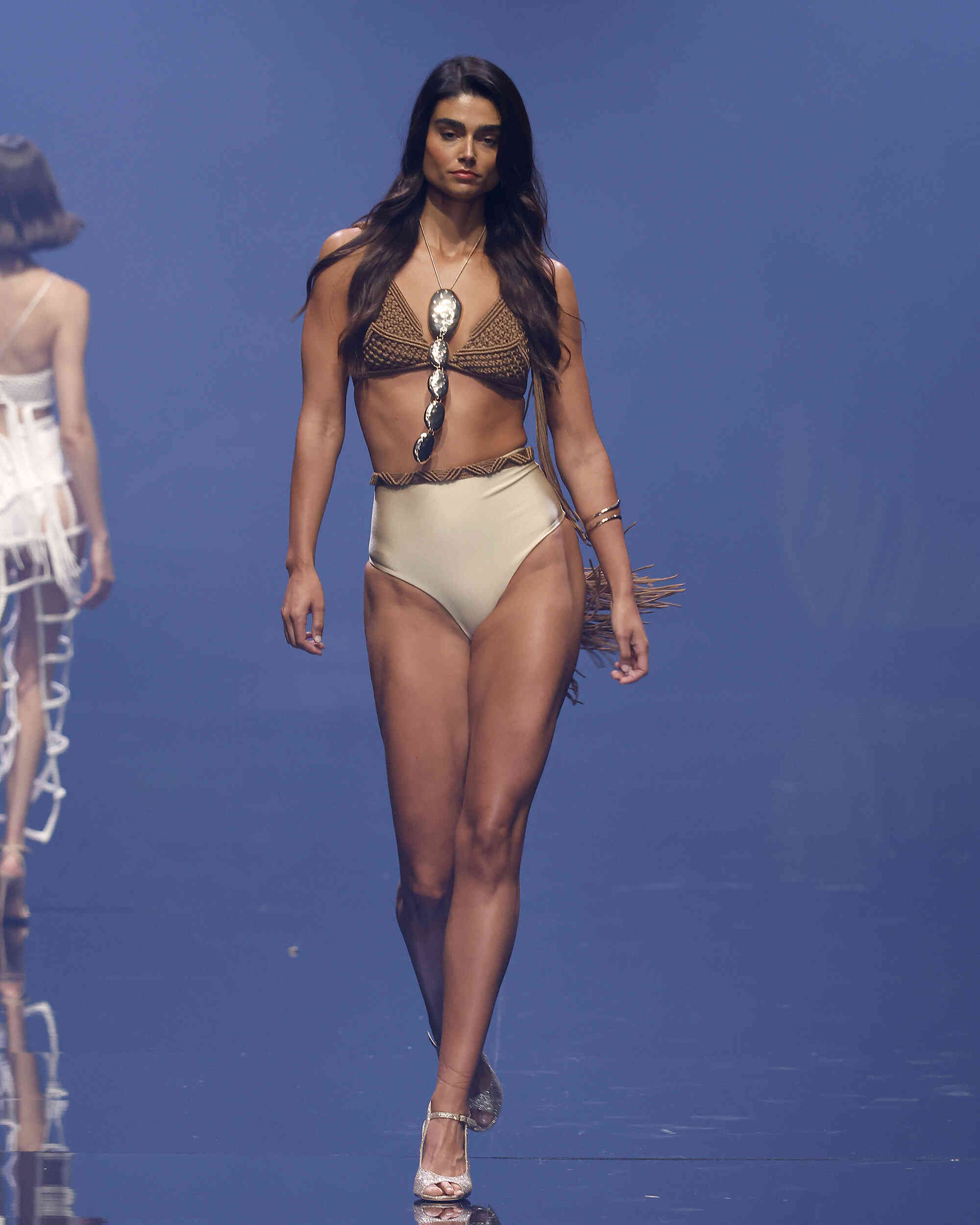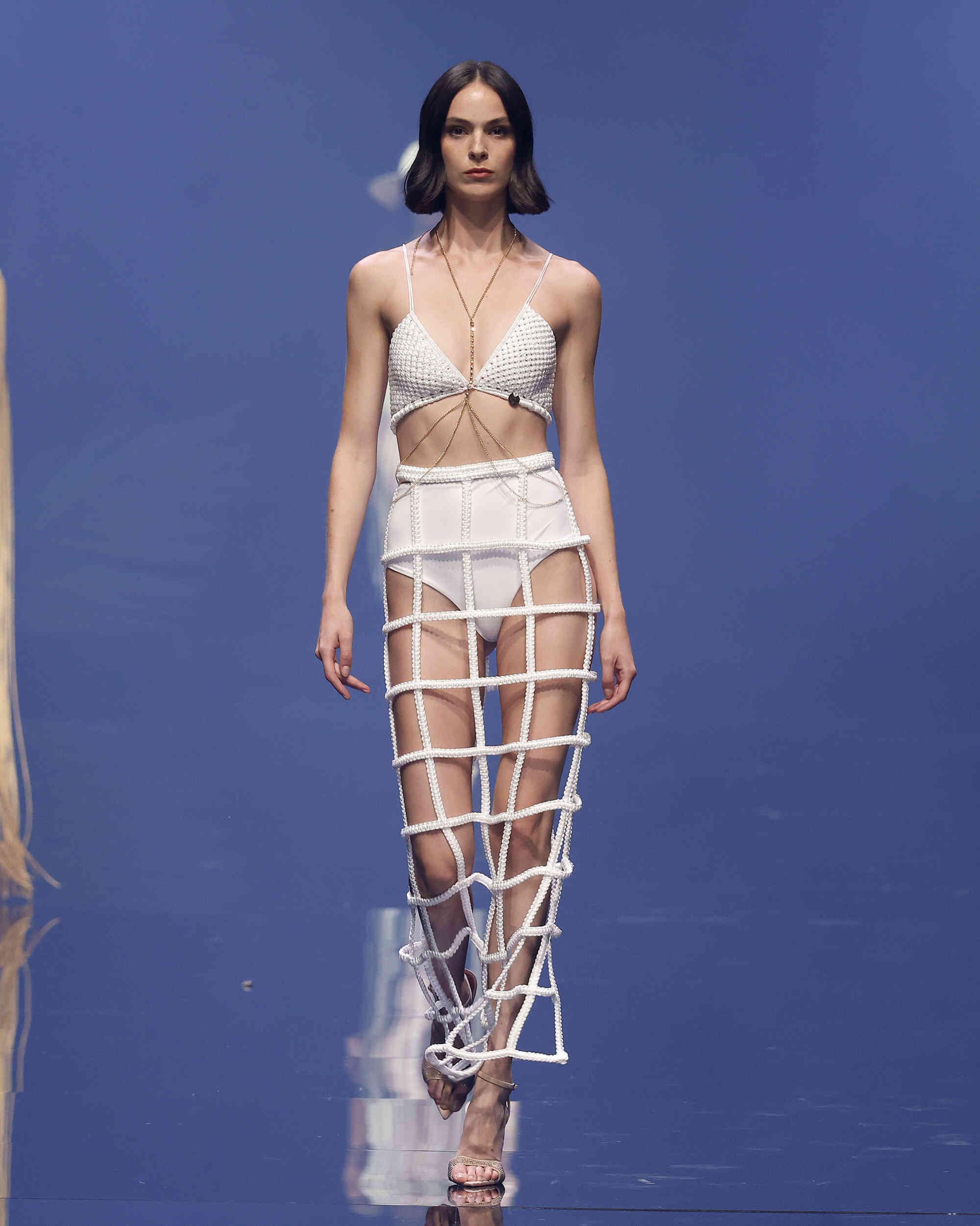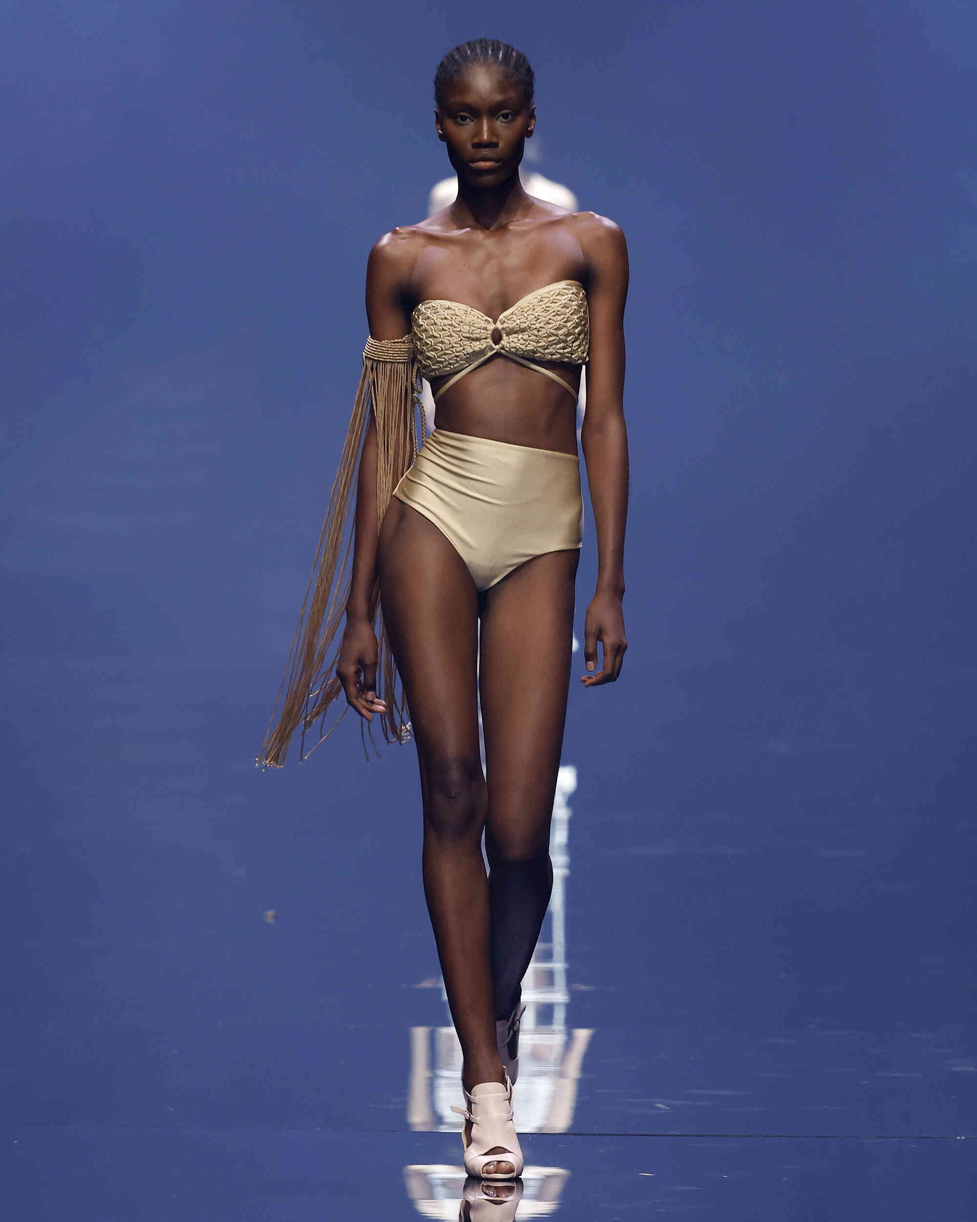 "Puesta de sol" es una colección que traduce en moda la transición poética del día hacia la noche. A través de colores, texturas y formas, cada look refleja un momento del atardecer. Se divide en tres bloques: Luz Dorada, con tonos suaves y cálidos; Fuego, que explora la intensidad del sol con rojos y naranjas vibrantes; y Crepúsculo, donde dominan los azules profundos y metálicos que evocan el misterio nocturno. Las siluetas son envolventes y superpuestas, sugiriendo introspección. La colección es una experiencia sensorial y visual donde la moda se convierte en arte que ilumina incluso en la oscuridad.