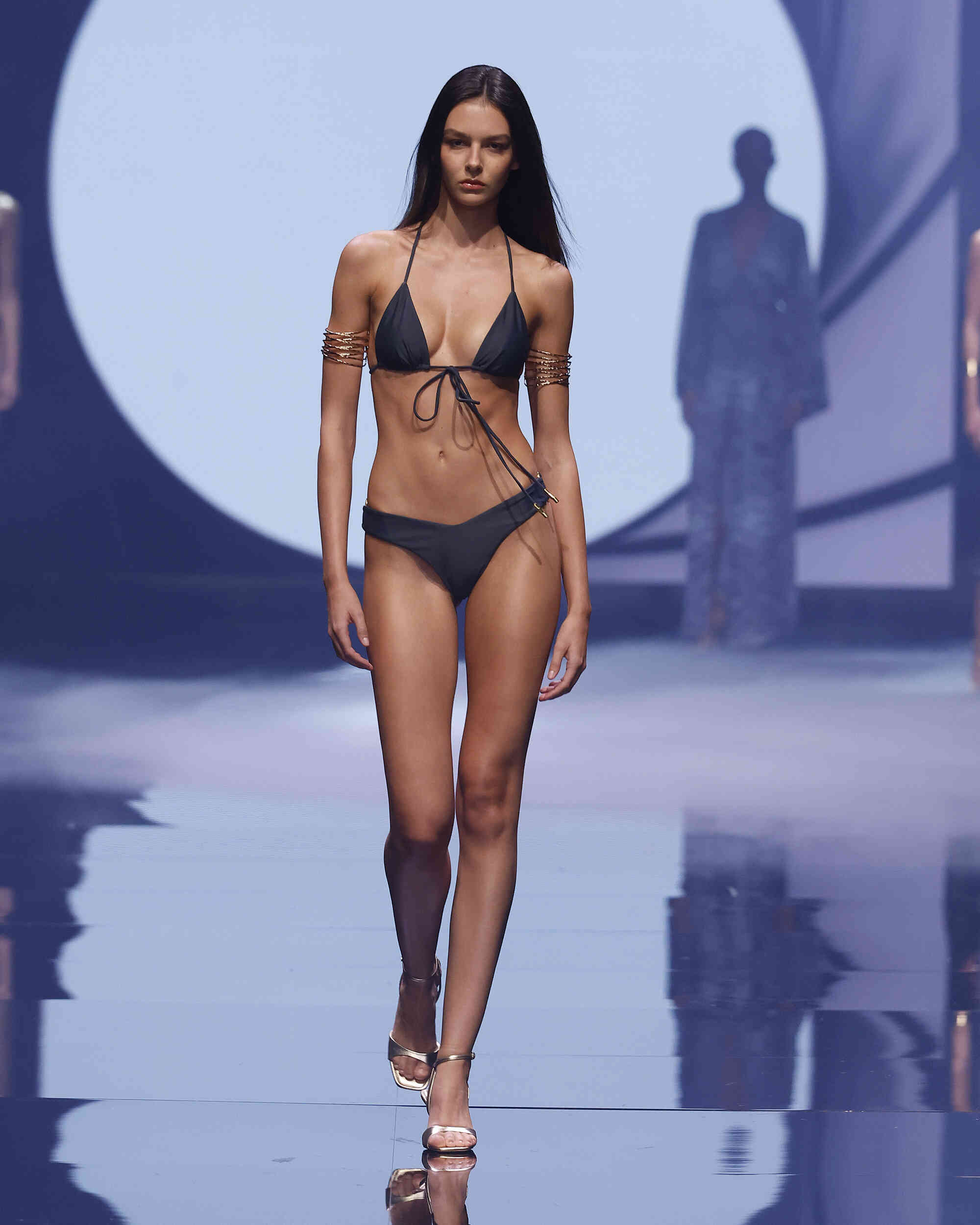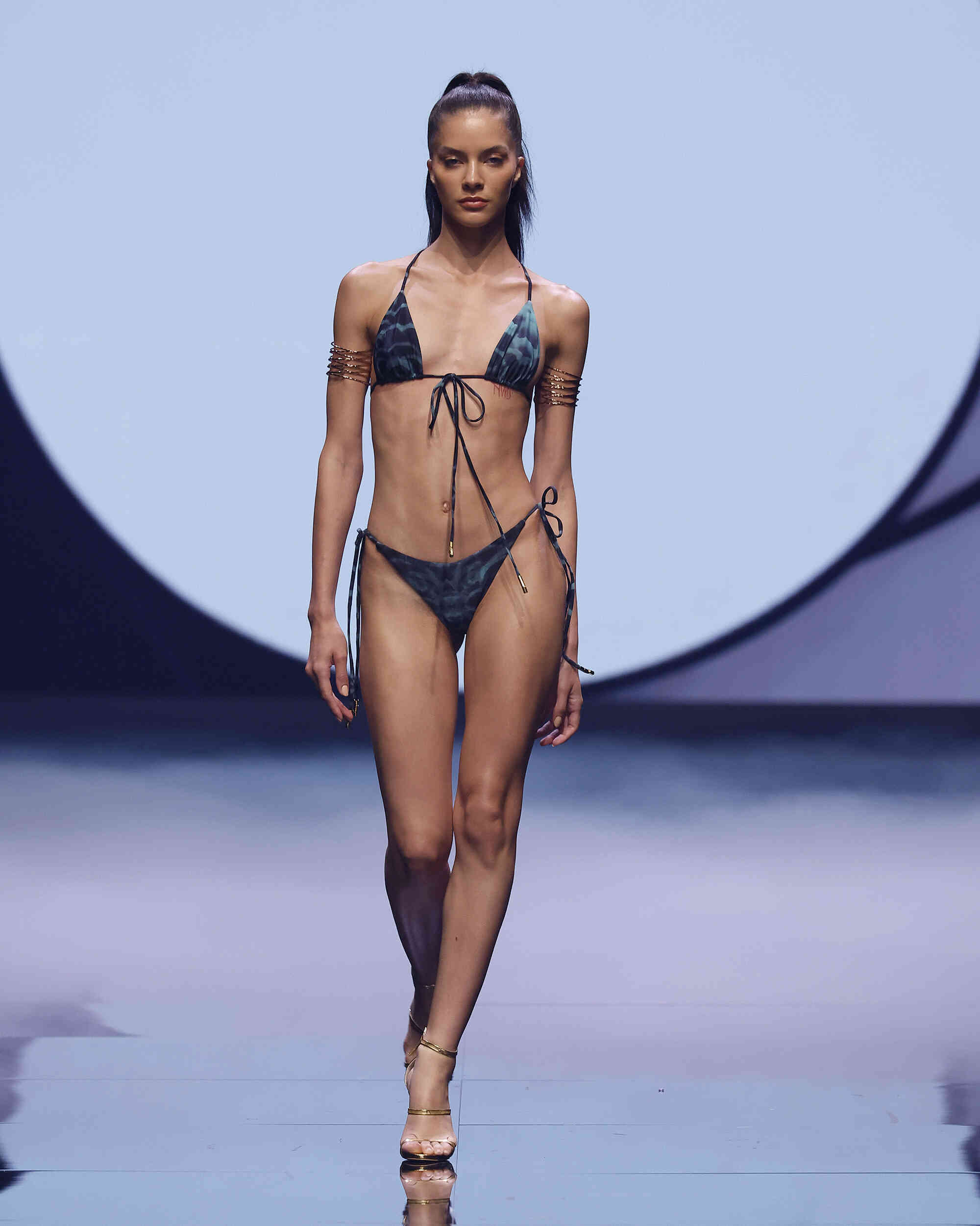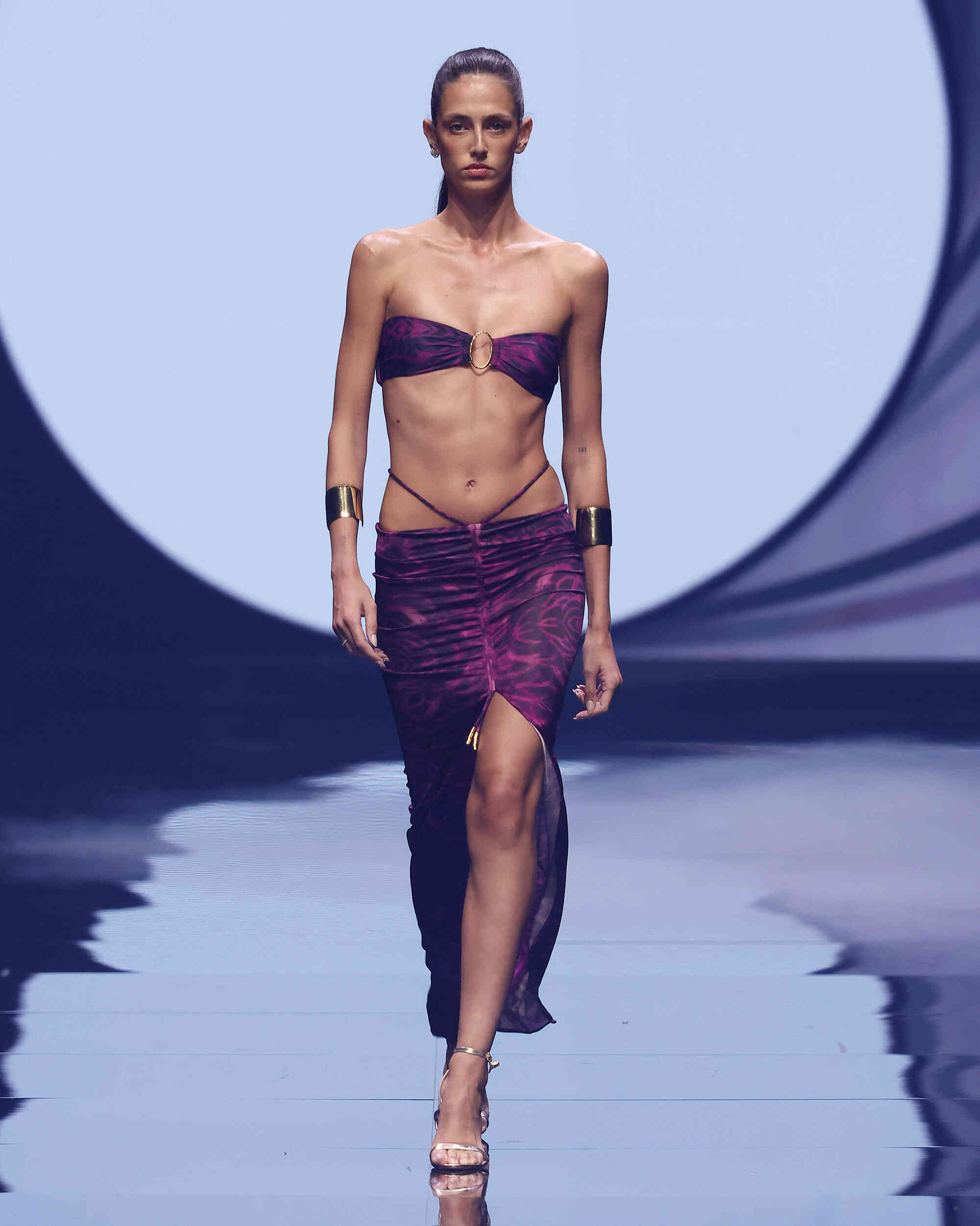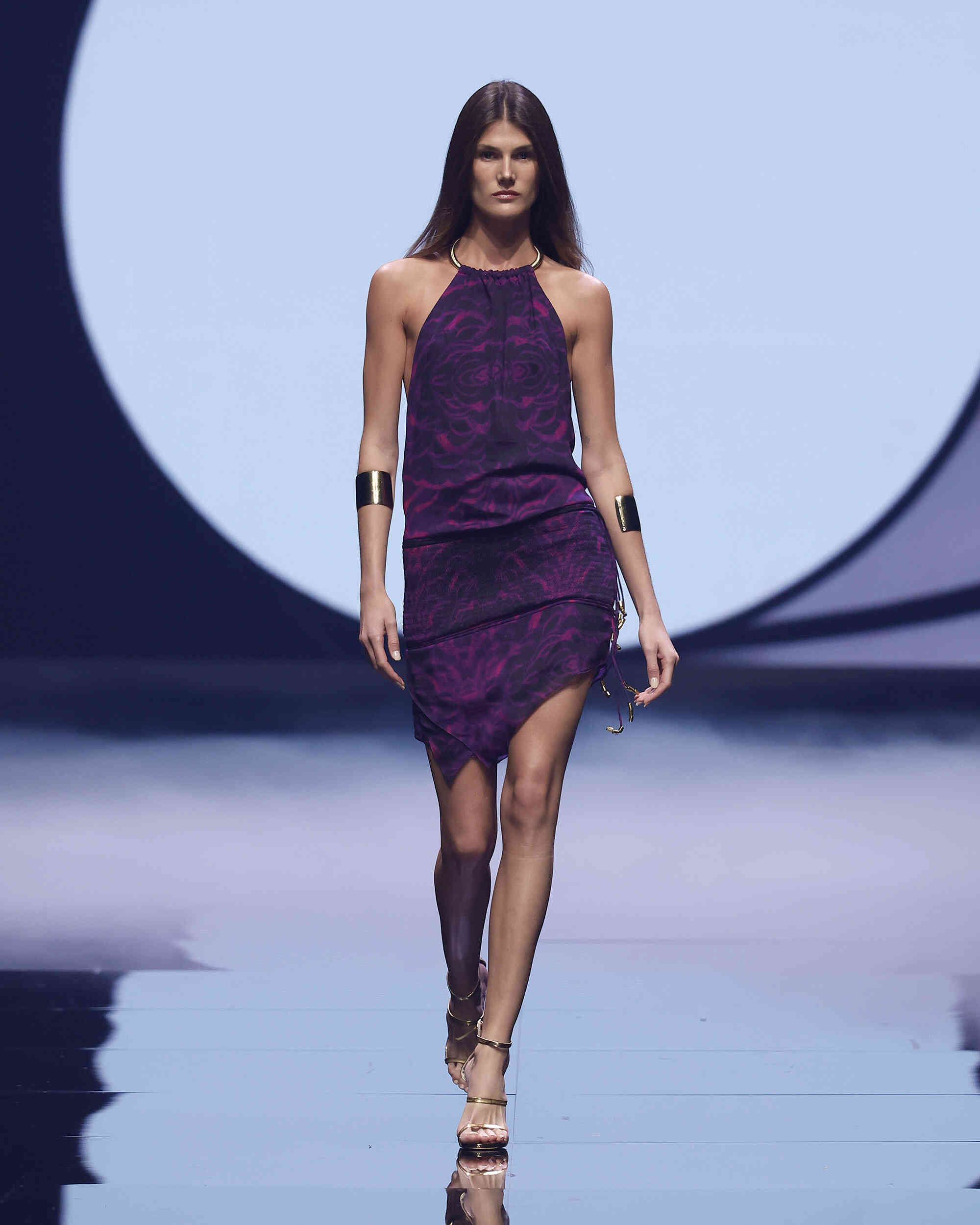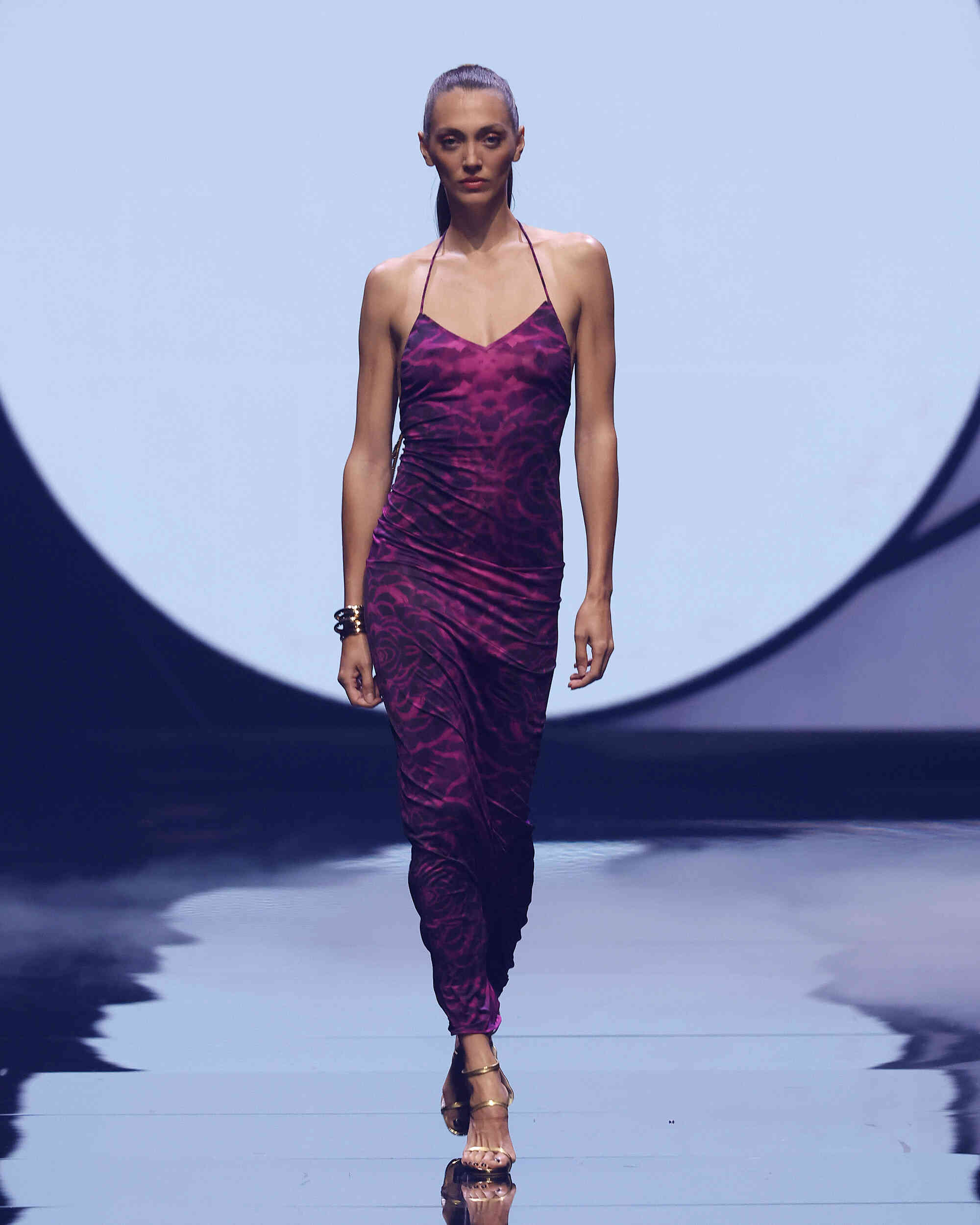 Carlos San Juan propone una Colección, envuelta en un halo de misterio y sensualidad. Diseñada para mujeres sexys y sofisticadas, esta Colección es una invitación irresistible a celebrar los días y las noches en los destinos más exclusivos del mundo. Prendas de vestir confeccionadas en tejidos de chiffon y jersey de viscosa, acarician la piel en cada movimiento. Cada prenda es una obra de arte, diseñada para abrazar y celebrar el cuerpo femenino, destacando su belleza y sensualidad de manera natural. Destaca el personalísimo estampado, que en contraste con las piezas metálicas doradas, crean una presencia sofisticada y atemporal. En esta Colección el color protagonista es el Gris Vulcano, que se muestra en tonos lisos o mezclándose sutilmente con el Verde Jade, el Azul Iris y el Rosa Mexicali.