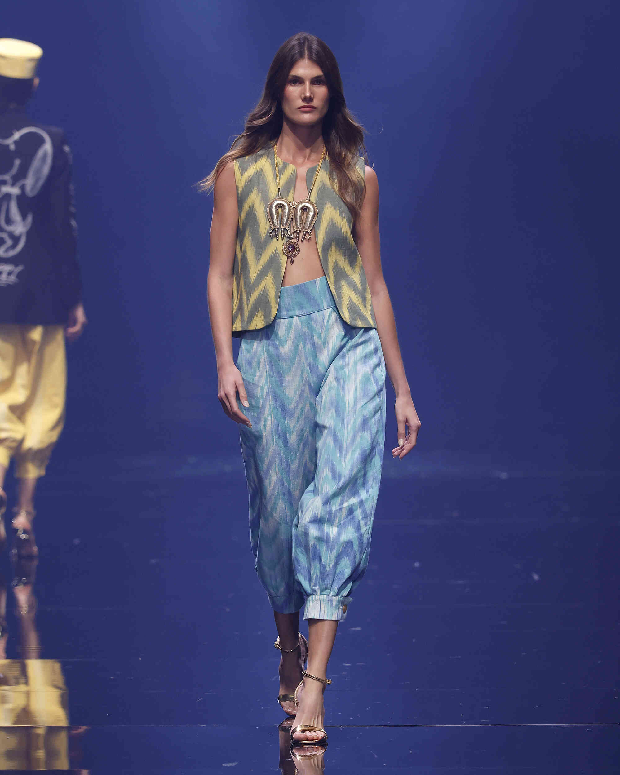 Una fusión de culturas, tejidos y texturas donde el color y las joyas heredadas de su madre dan vida a un estilismo étnico y sofisticado. Sobre Teixits Riera: Fundada en 1896 en Lloseta, Mallorca, Teixits Riera es la última fábrica artesanal de “telas de llengües”, un tejido icónico de la isla elaborado en telares tradicionales. Sus diseños atemporales reflejan la identidad cultural mallorquina y preservan un saber hacer transmitido durante generaciones