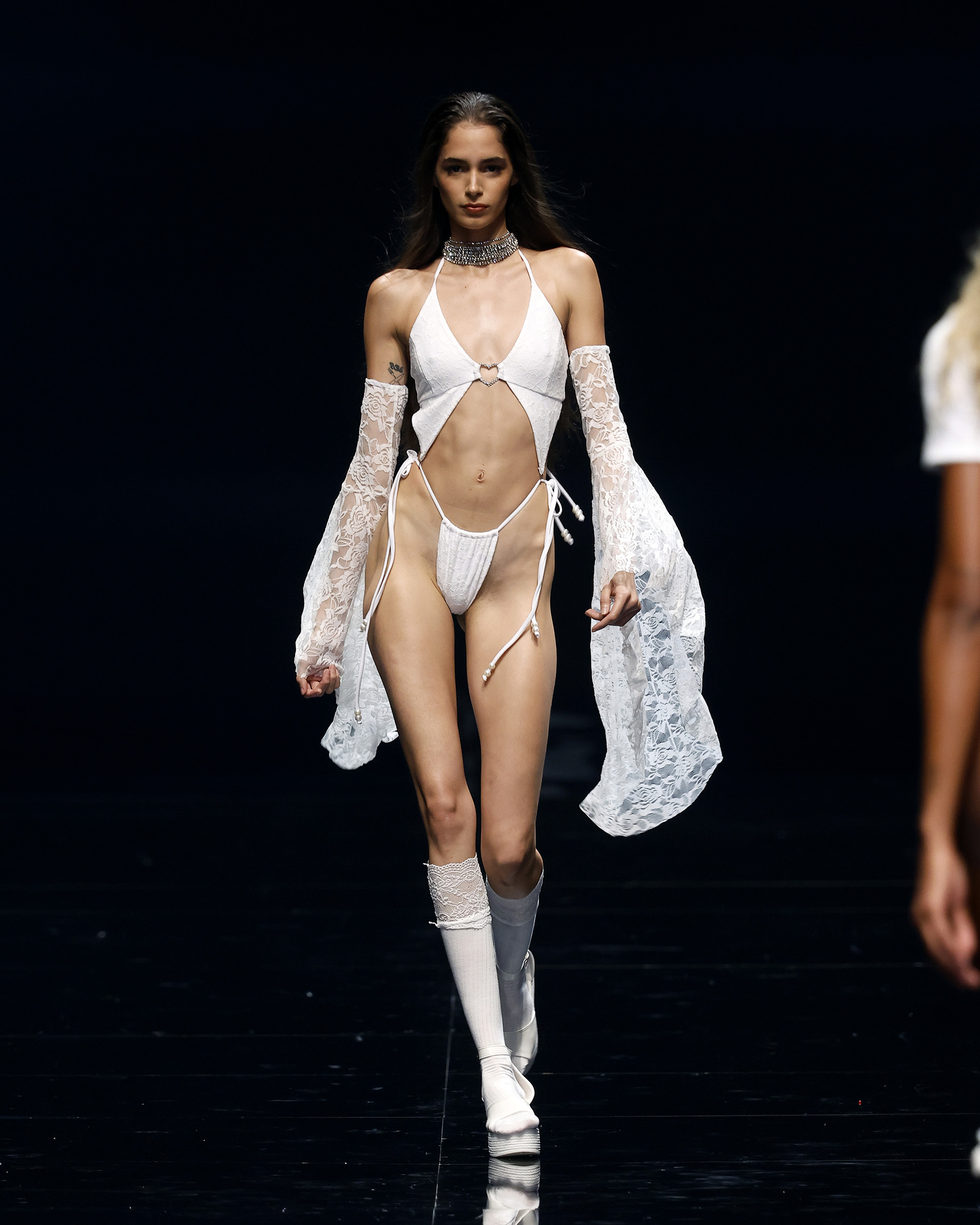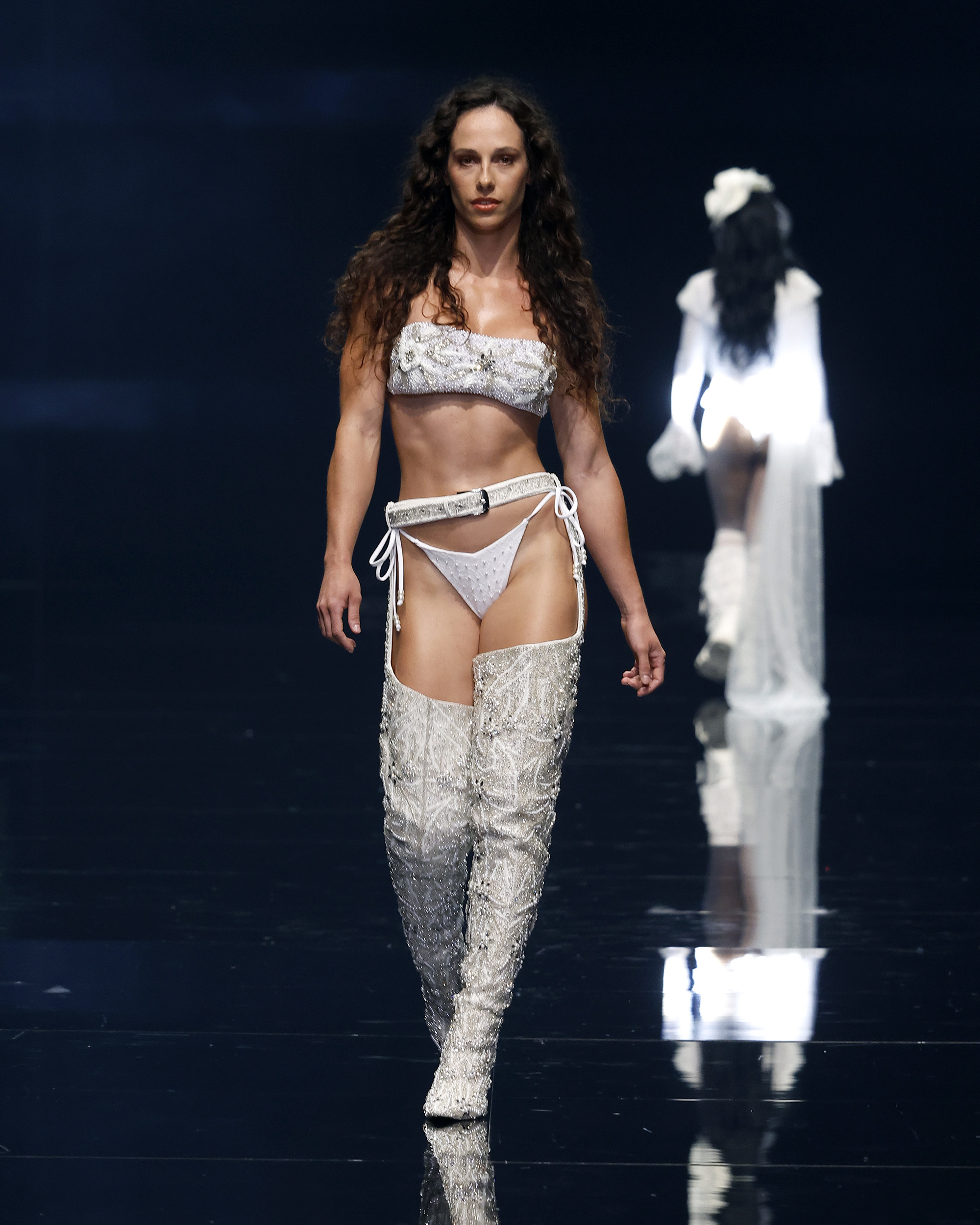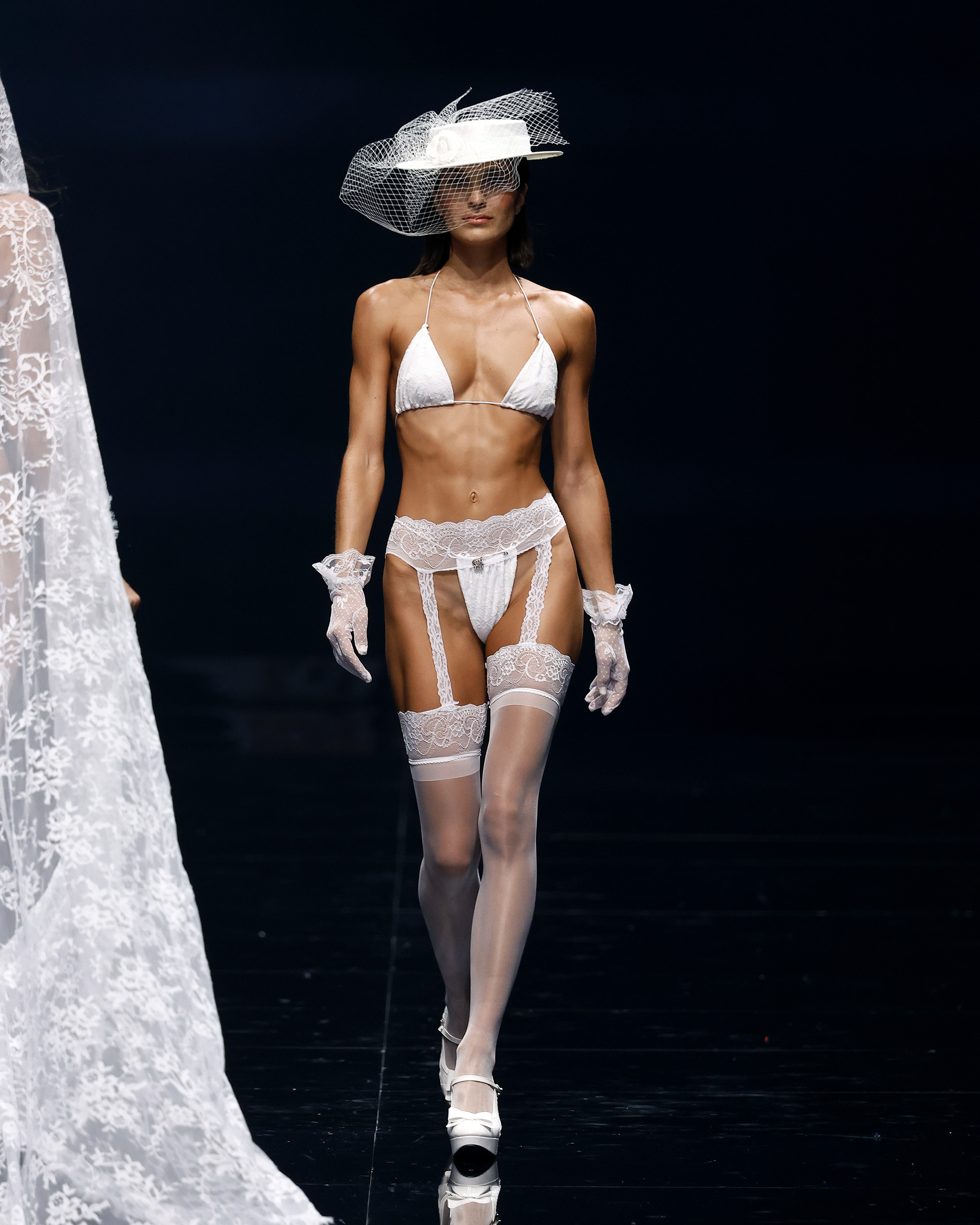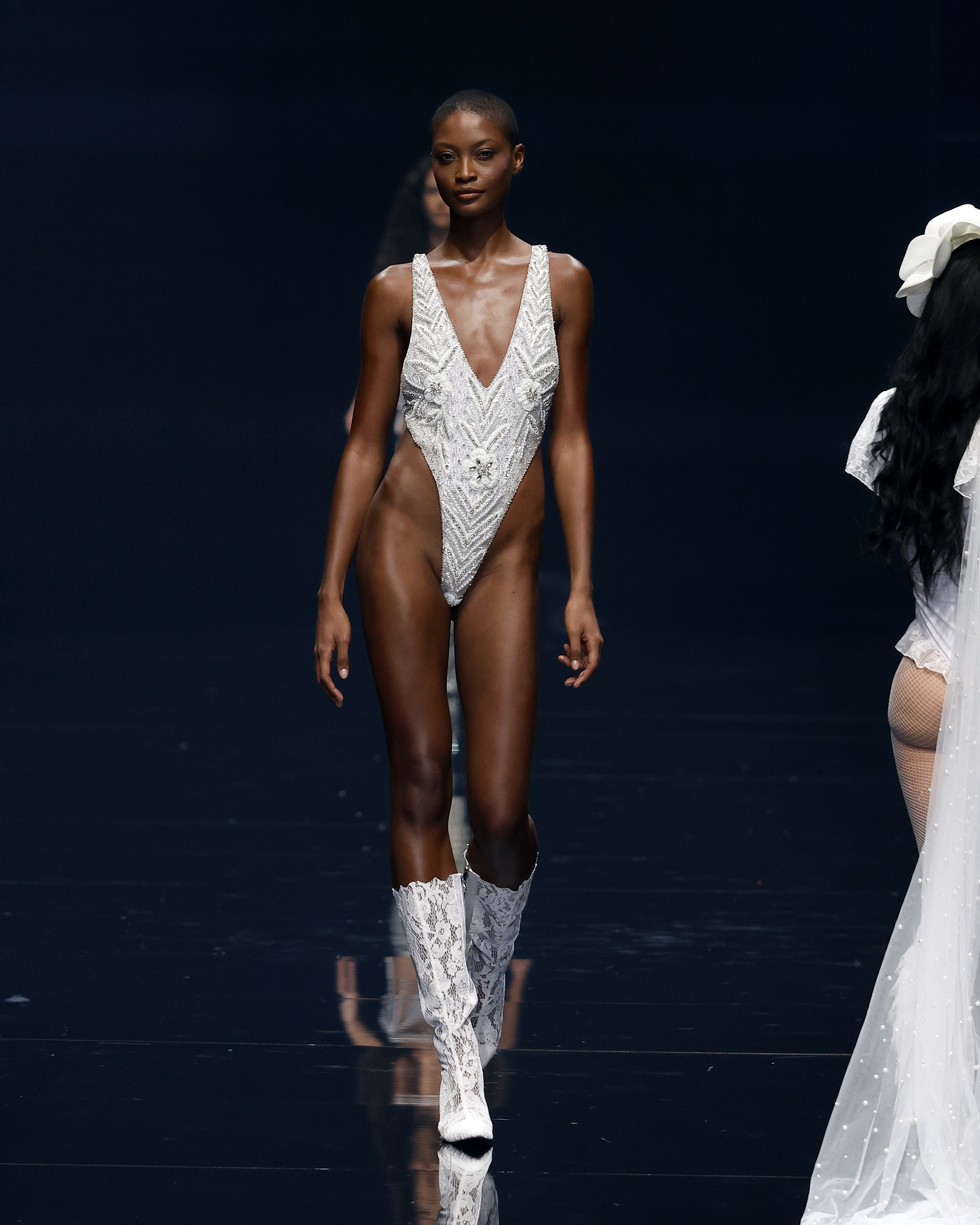"Mi inspiración para Amour Oui proviene del romance eterno de los viajes y la poesía de las flores, y el poder transformador de la palabra más hermosa del amor: sí." Las flores, como símbolos eternos del amor—rosas para la pasión, lirios para la pureza, peonías para la devoción—se transforman delicadamente en encaje, bordados y detalles exquisitos que florecen en cada creación. En el corazón de la colección yace el momento del "Sí", ese latido en el que el amor se convierte en eterno, capturado en el brillo de las perlas, la suavidad de las sedas drapeadas y la complejidad del trabajo a mano. Cada pieza es una oda a la artesanía hecha a mano, celebrando la tradición atemporal de la alta costura, donde cada puntada es una carta de amor y cada detalle un recuerdo preciado.