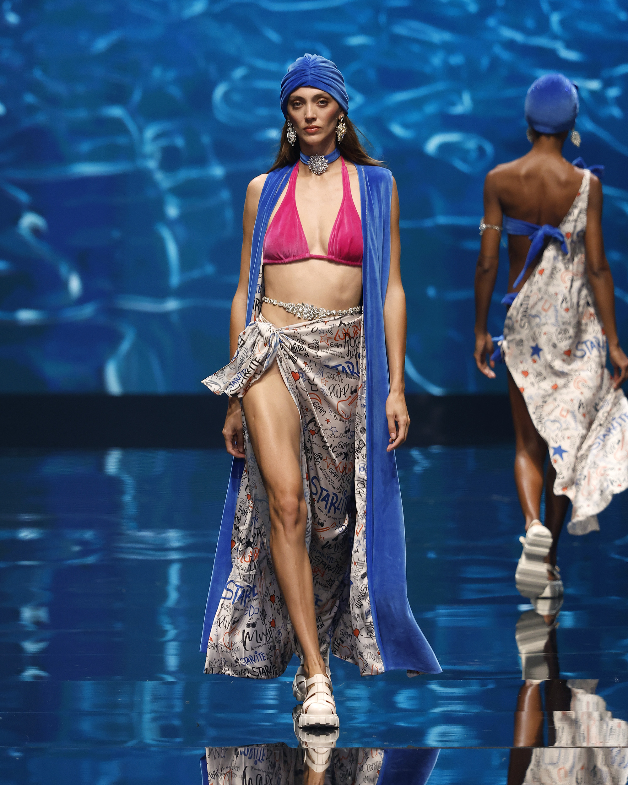 La nueva colección de Starlite Universe se inspira en una fusión atrevida y sofisticada que nace del contraste entre la suavidad de los tejidos y la fuerza del arte urbano. Esta colección de baño toma como referencia la textura esponjosa del tejido terry, el brillo sensual del terciopelo (velvet) y el dinamismo visual de estampados con grafiti, que aportan un toque rebelde y contemporáneo. Es una propuesta que combina lo nostálgico con lo moderno, pensada para quienes buscan destacar con estilo, originalidad y personalidad dentro y fuera del agua. Starlite Universe se compromete con la moda eco-responsable. Toda la colección está fabricada en Portugal utilizando prácticas sostenibles y materiales de alta calidad, como el tejido rizo, conocido por su durabilidad y confort, así como el terciopelo, que aporta un toque de suavidad y sofisticación. Además, los tejidos con estampados de grafiti añaden una dimensión artística y urbana a las prendas, fusionando estilo y personalidad con una clara conciencia ambiental. Este enfoque no solo asegura piezas visualmente impactantes y cómodas, sino también un impacto positivo en el medio ambiente.