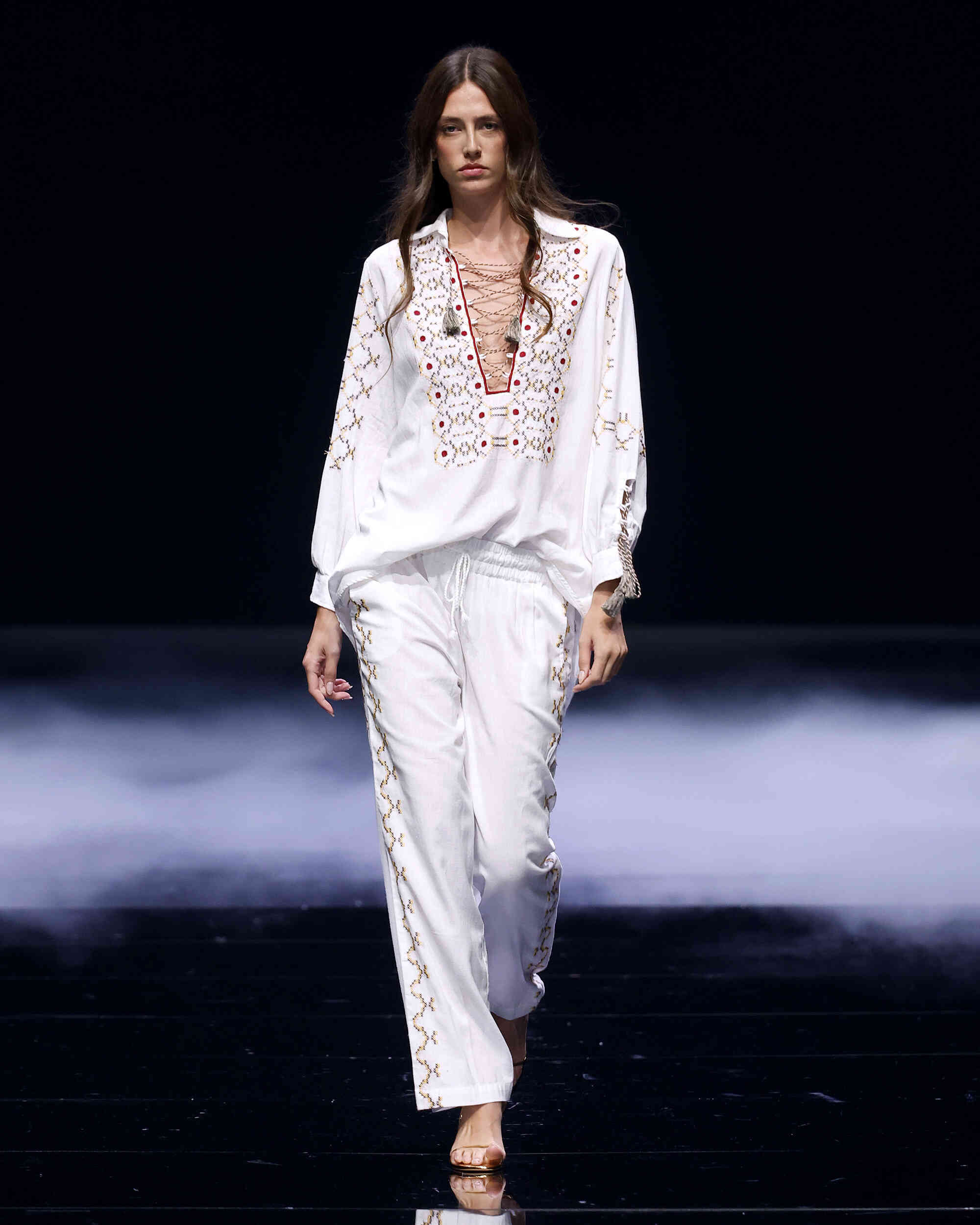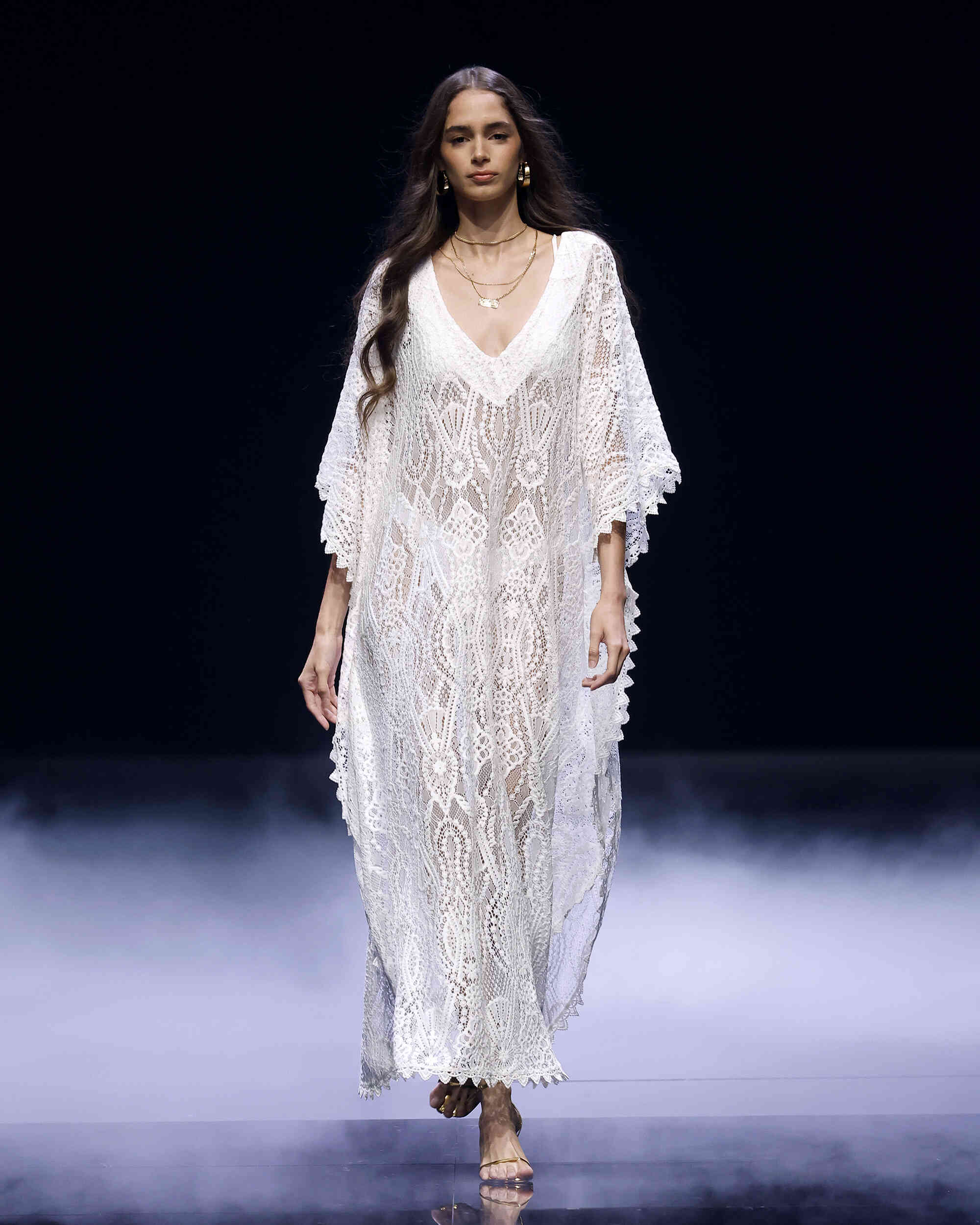 La colección Cruise 2026 de Melissa Odabash celebra 25 años de diseño icónico en moda de baño, inspirada en sus recuerdos de infancia en St. Martin y el glamour sin esfuerzo del estilo resort de los años 70. Presentada junto a piezas exclusivas de archivo, la colección combina una elegancia nostálgica con sofisticación contemporánea. Siluetas fluidas —maxis drapeados, caftanes ligeros y cubrecamisones tejidos— están confeccionadas con lujosas telas italianas, con detalles cosidos a mano y sutiles toques metálicos. Una paleta luminosa de pasteles, azules oceánicos y tonos dorados evoca el Caribe, mientras los estampados de guepardo y eslabones aportan un encanto atemporal.