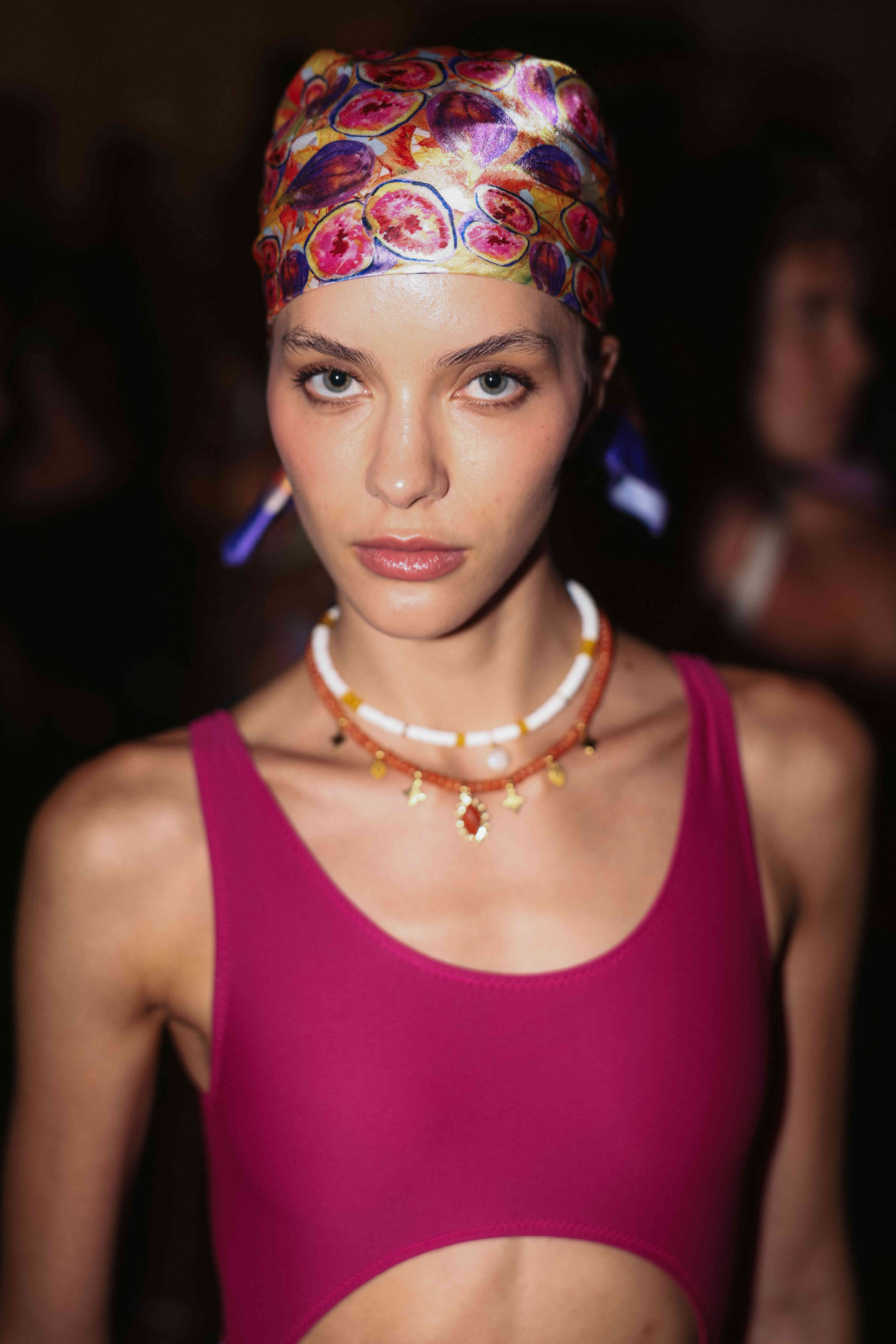 Las prendas versátiles para fuera del agua —como pareos vaporosos, salidas de crochet y kimonos— amplían la colección más allá de la playa. Tonalidades ricas y veraniegas, desde corales radiantes y rosados atardecer hasta azules turquesa y toques metálicos, evocan calidez y elegancia