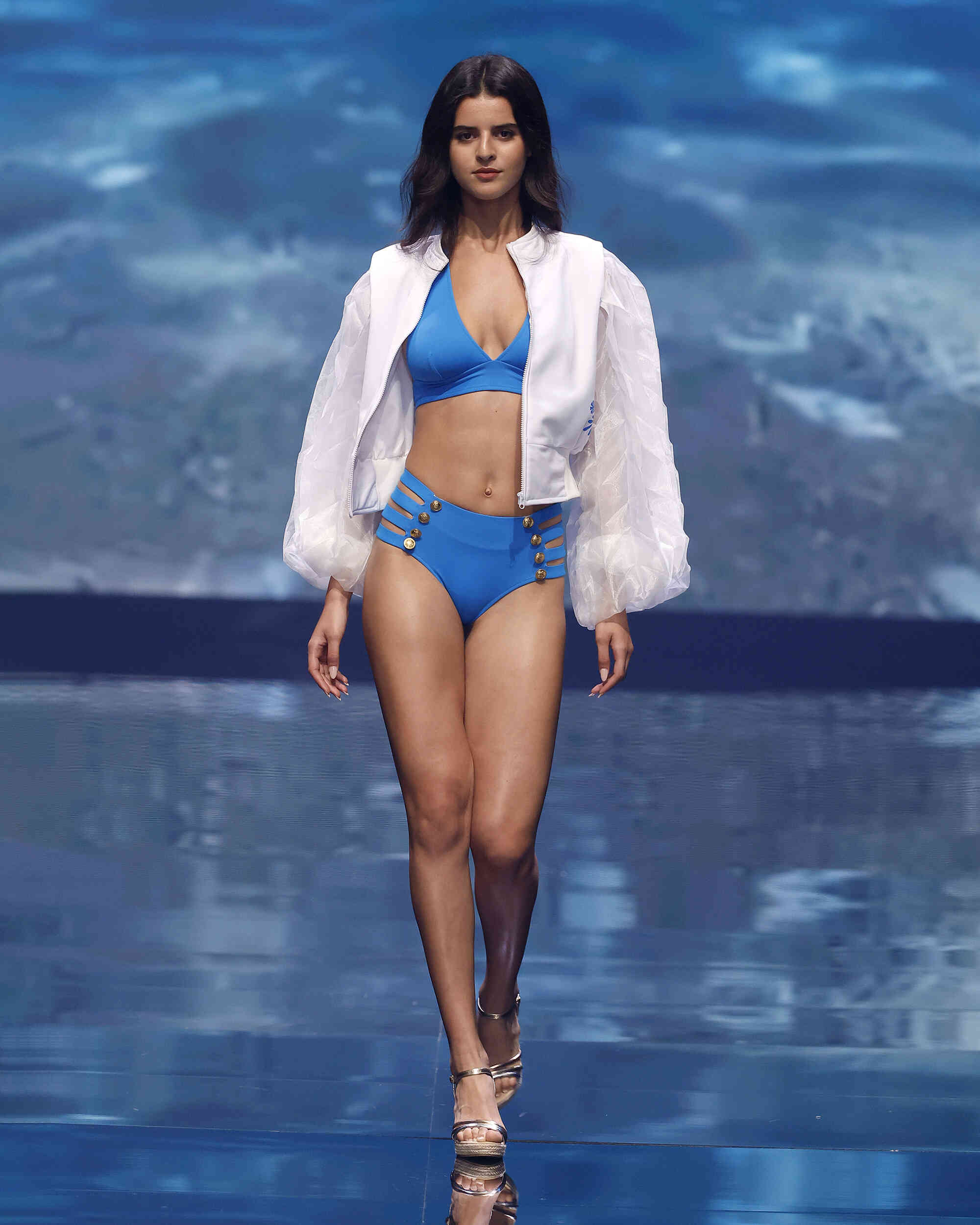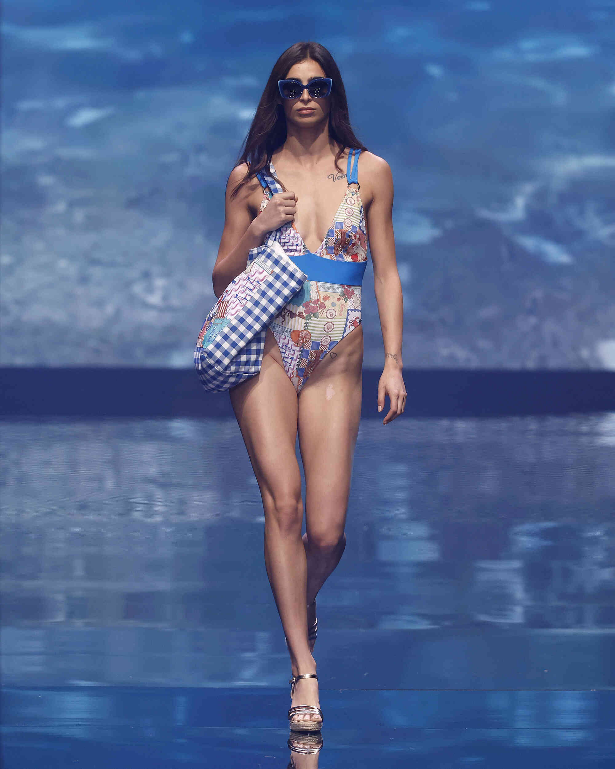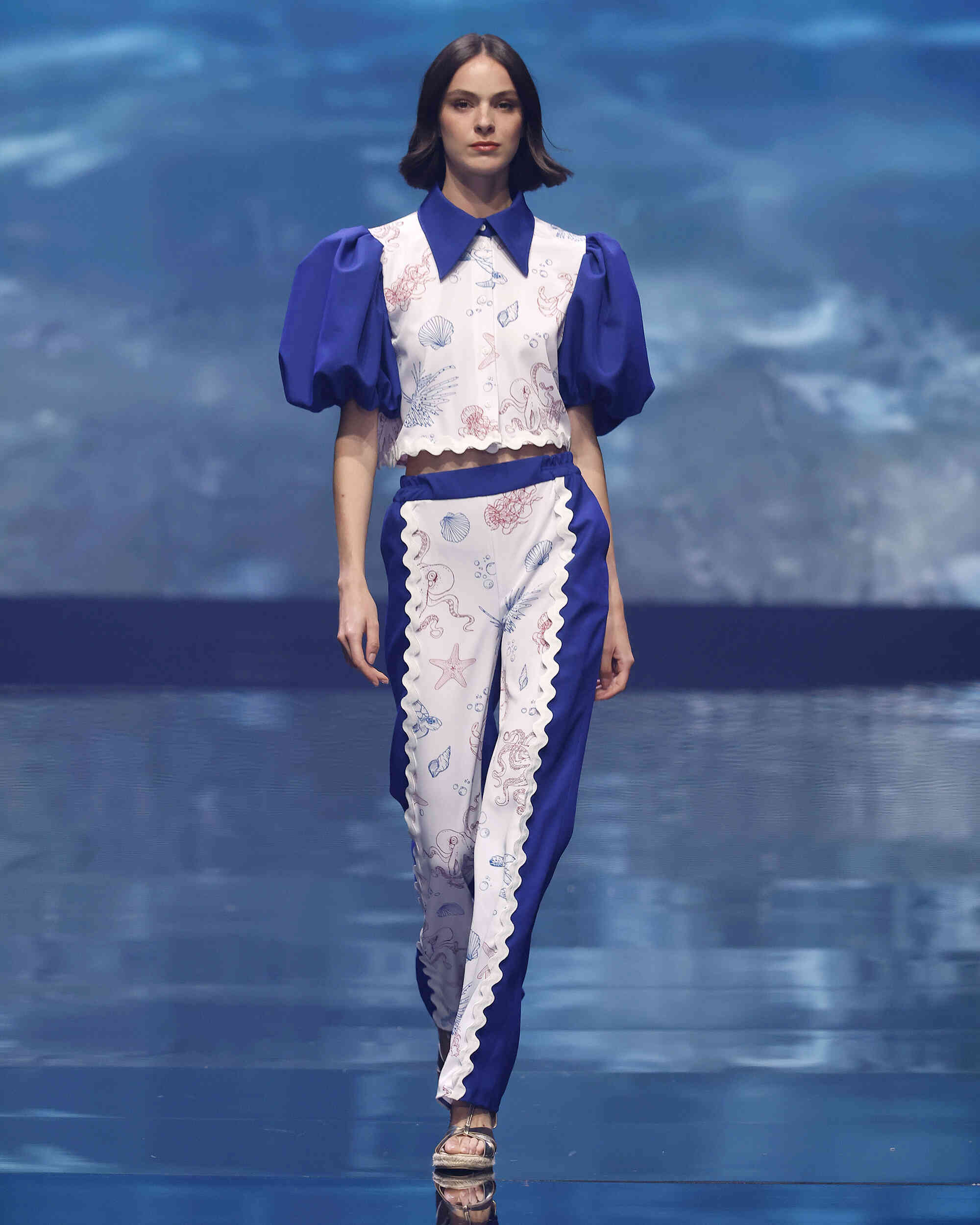 Desarrollada 100% en España, esta colección celebra la belleza y sostenibilidad en cada detalle. En ella los colores azul, blanco, fucsia y naranja se fusionan con estampados exclusivos que evocan elementos del mar y la tierra. Los bañadores y bikinis de cortes favorecedores, confeccionados con lycras recicladas o reciclables certificadas, se complementan con pareos, vestidos, camisas, pantalones y chaquetas en tejidos ligeros como gasa y satén de algodón entre otros.