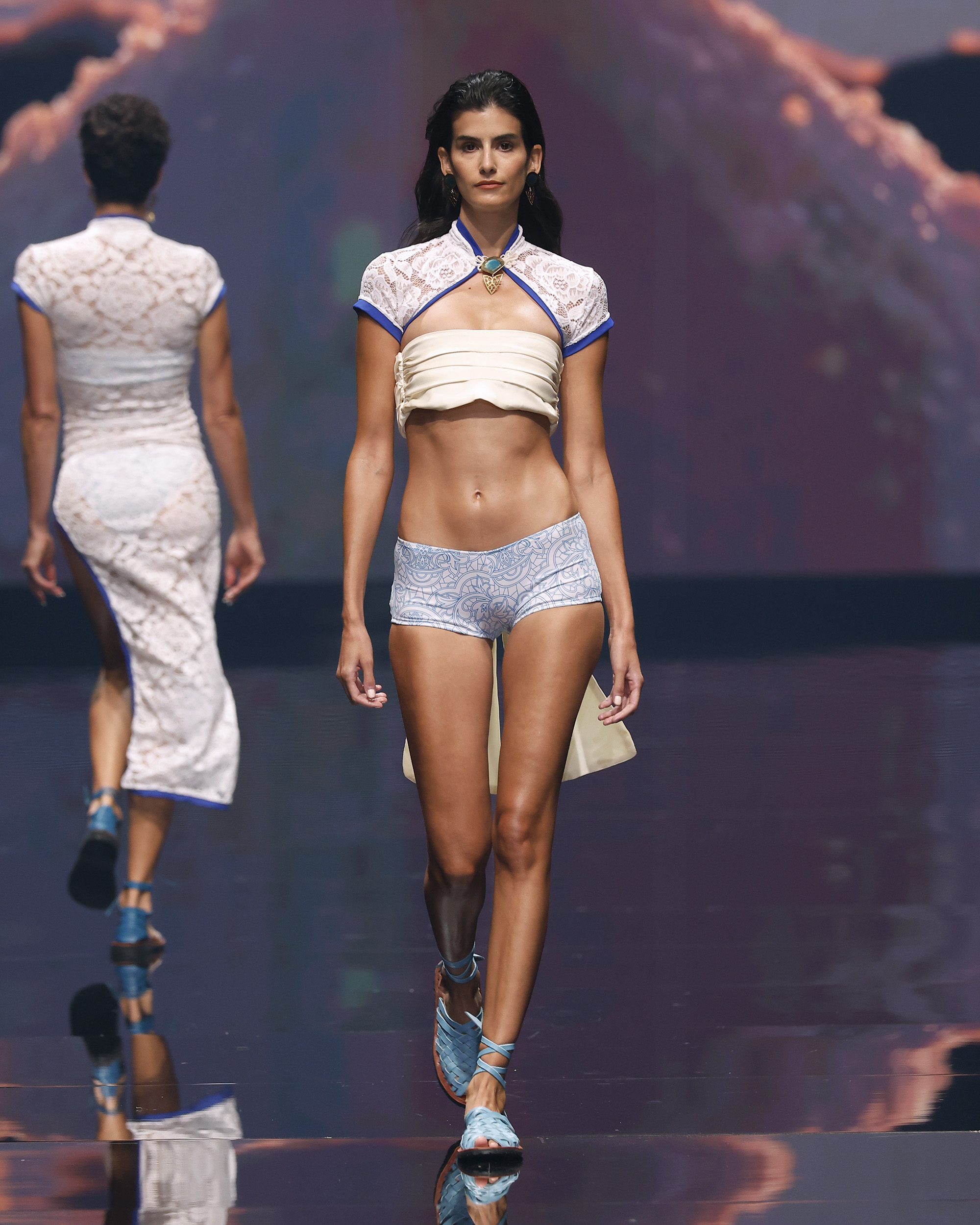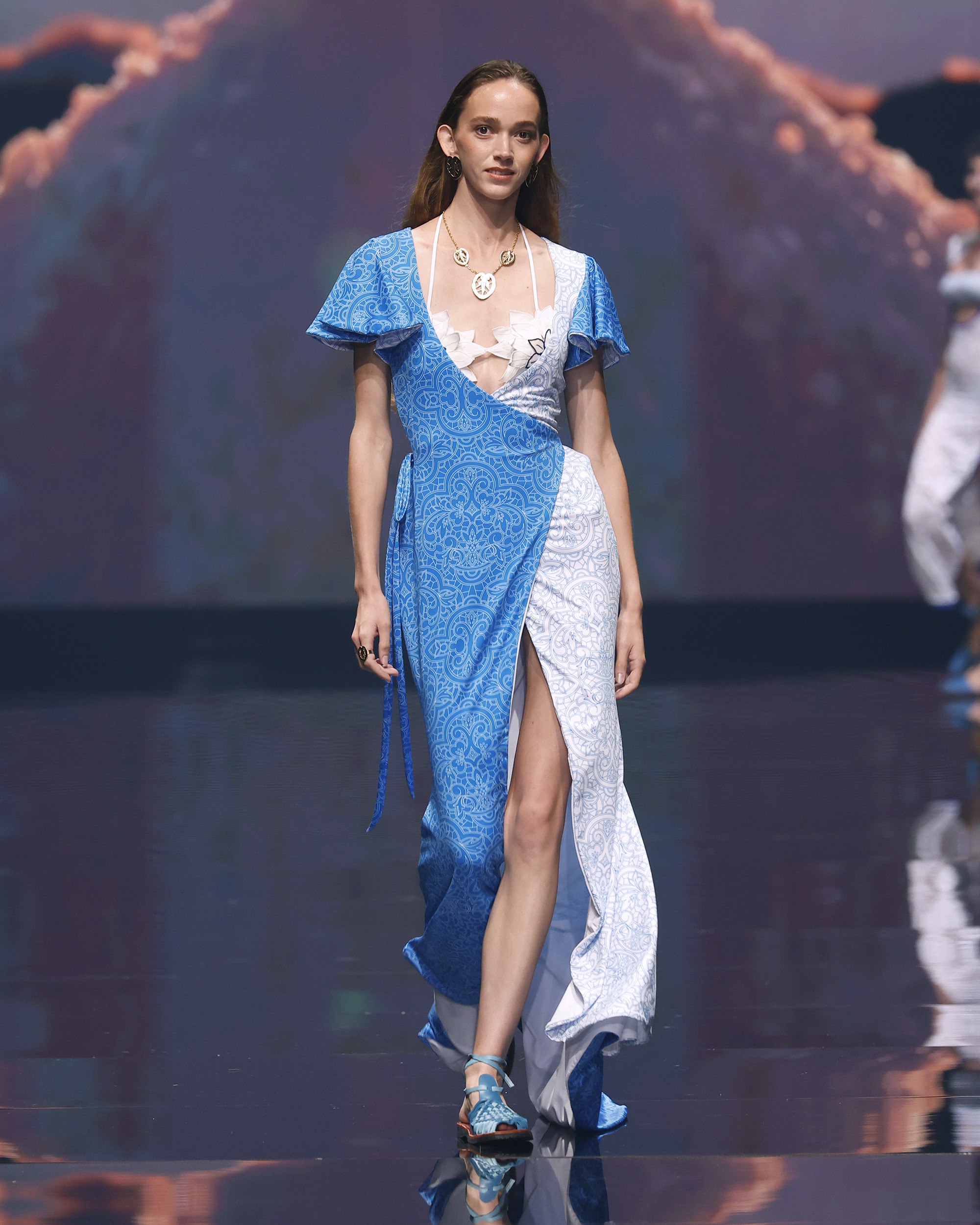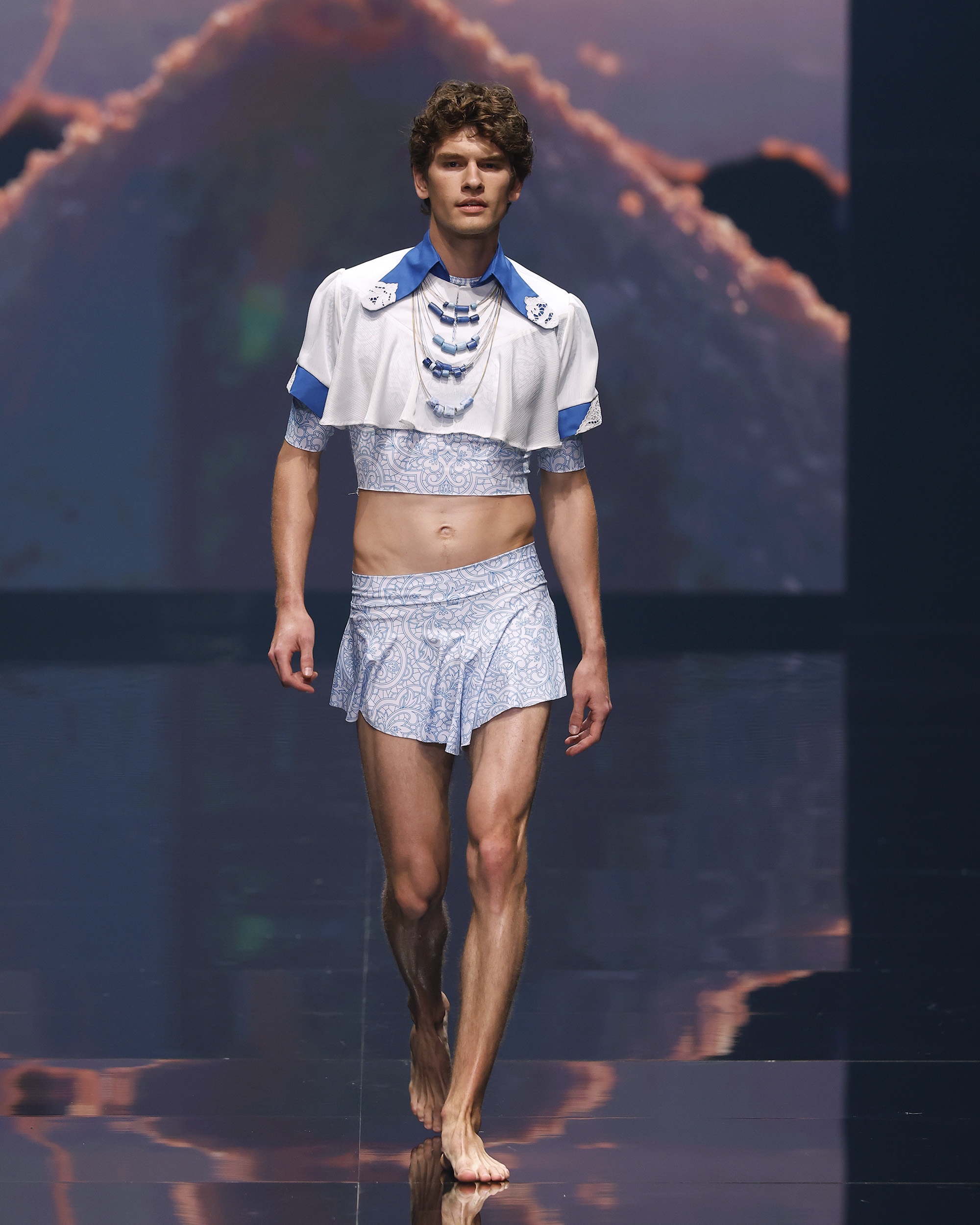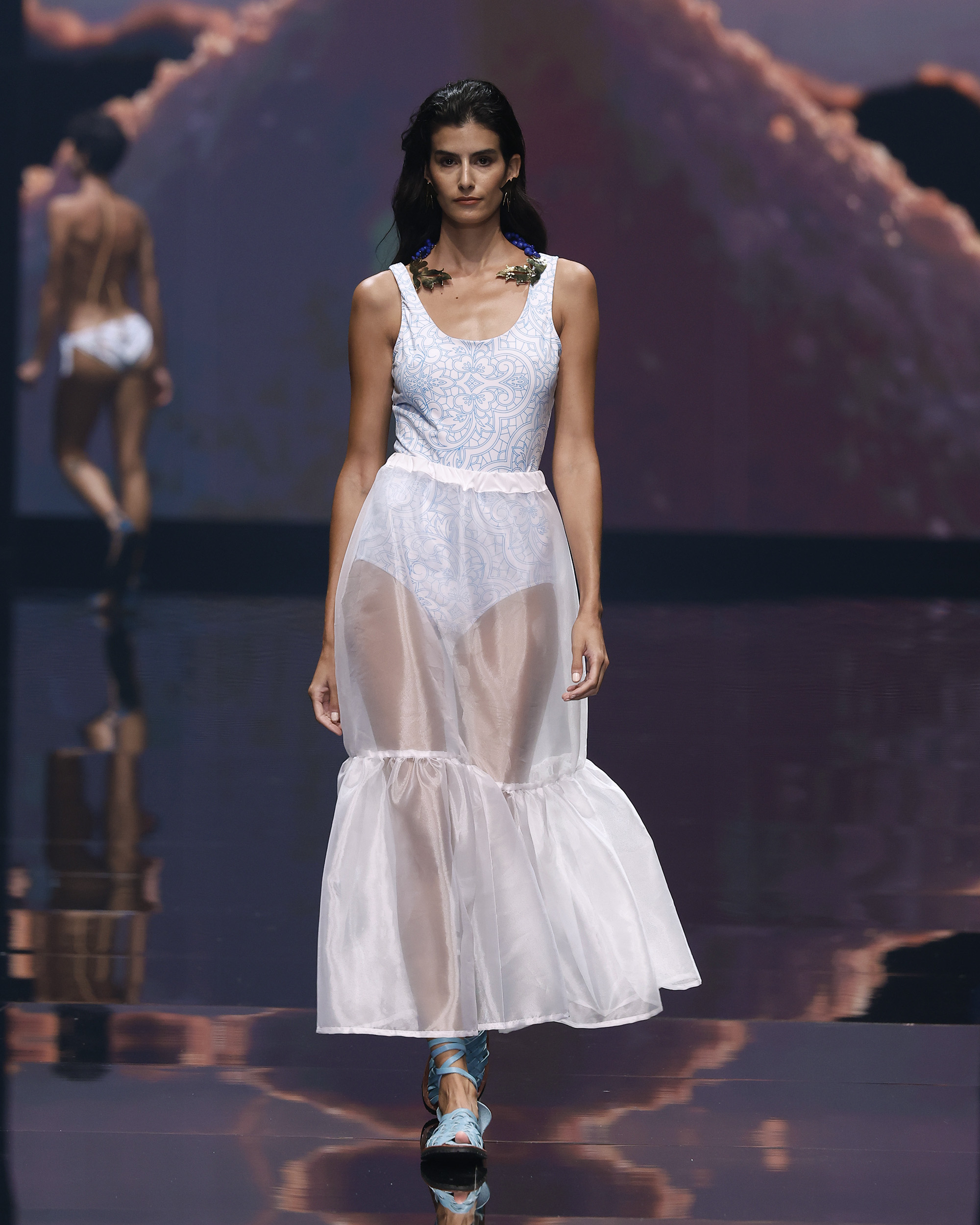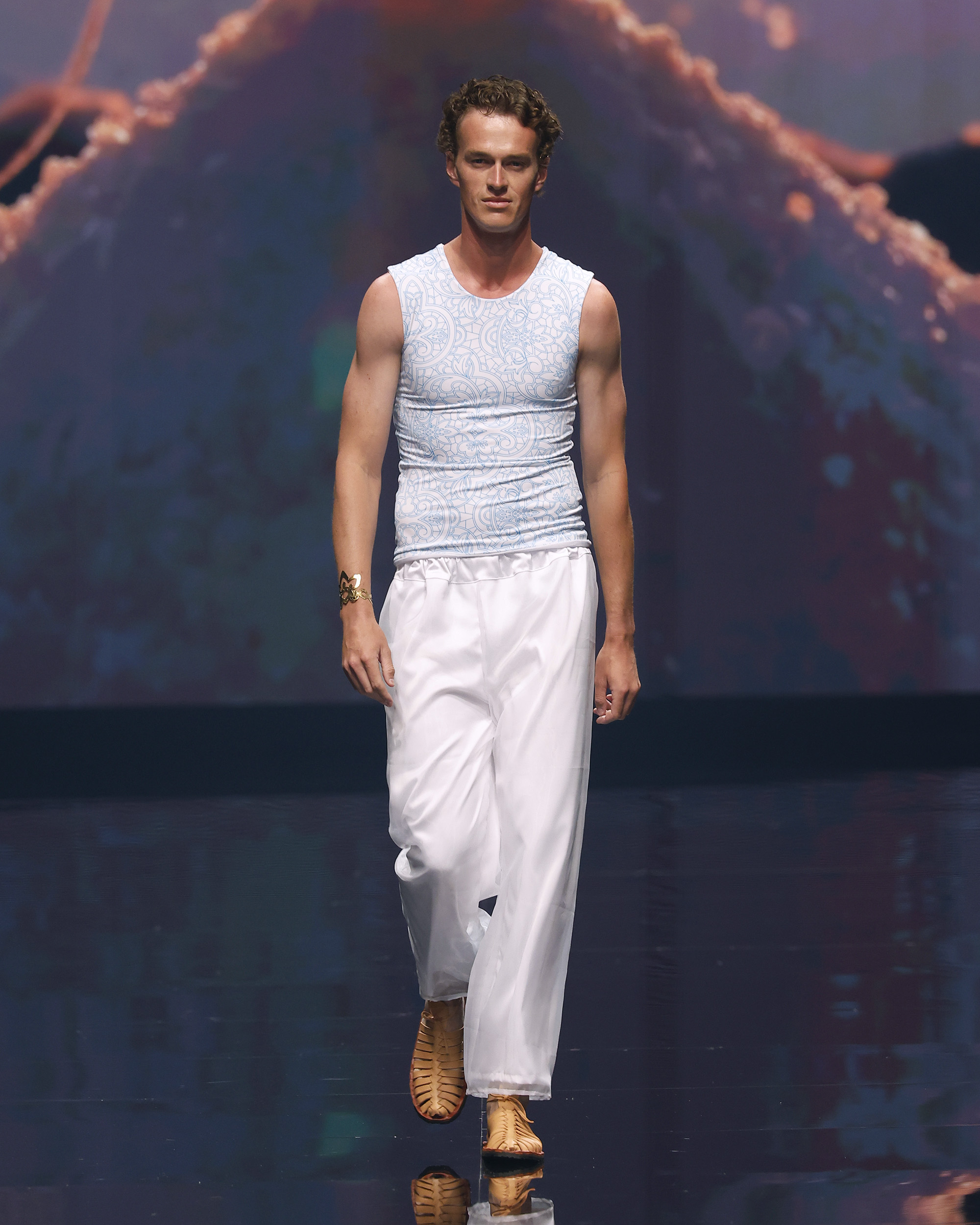 - Rayco Plata: Sus diseños están inspirados en la moda histórica, utilizando colores y formas que evocan los corales y la vida marina, creando cortes orgánicos que complementan la figura humana.