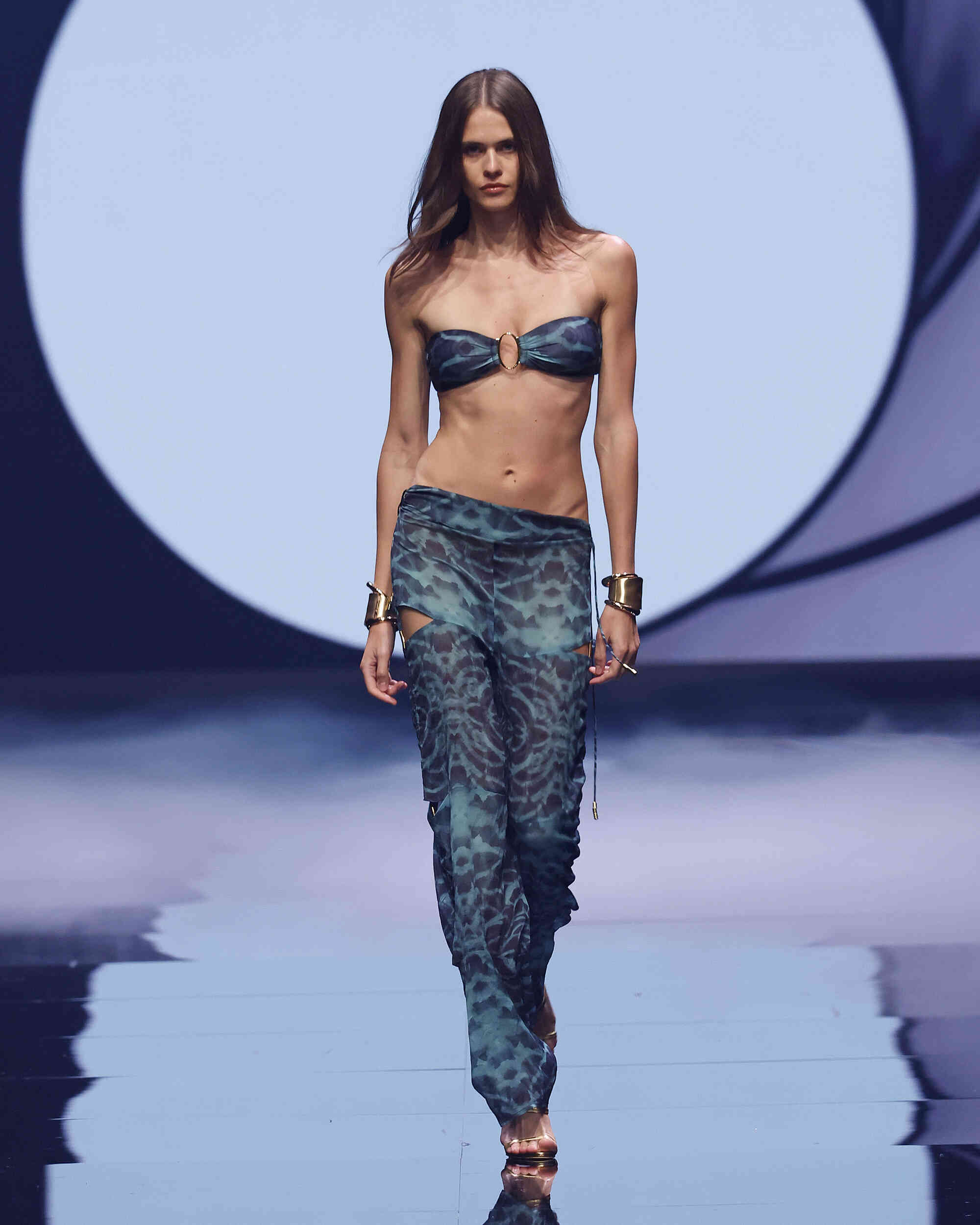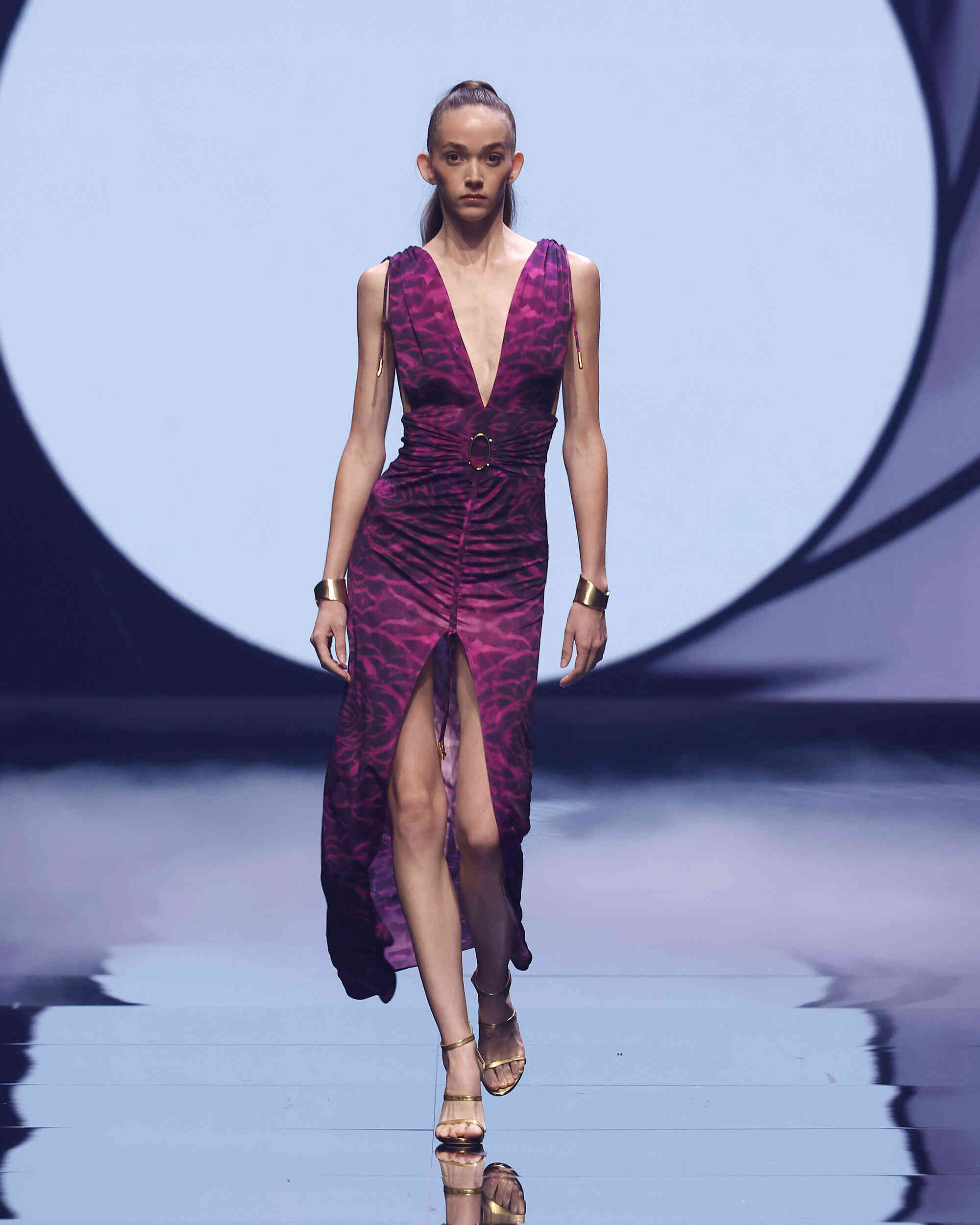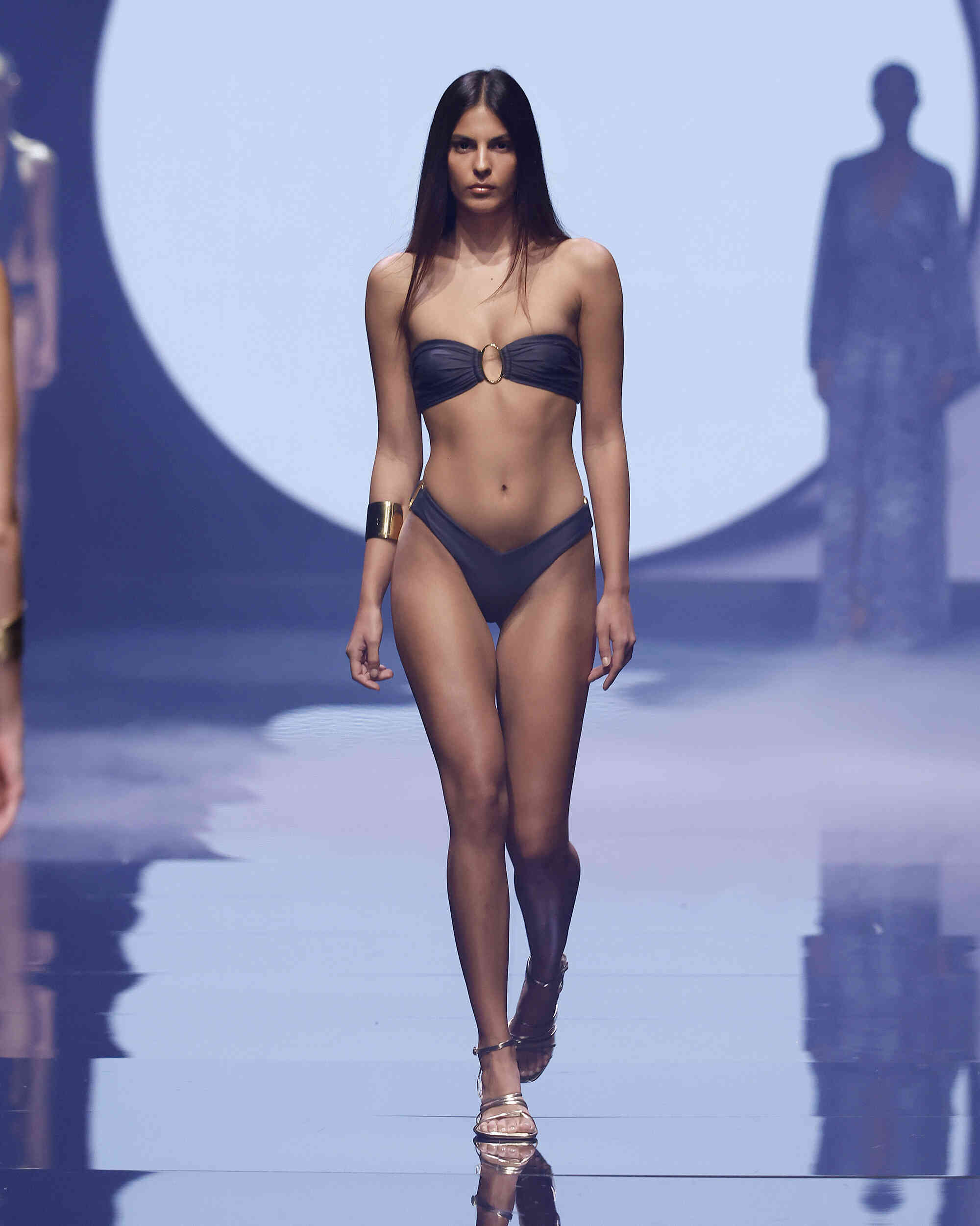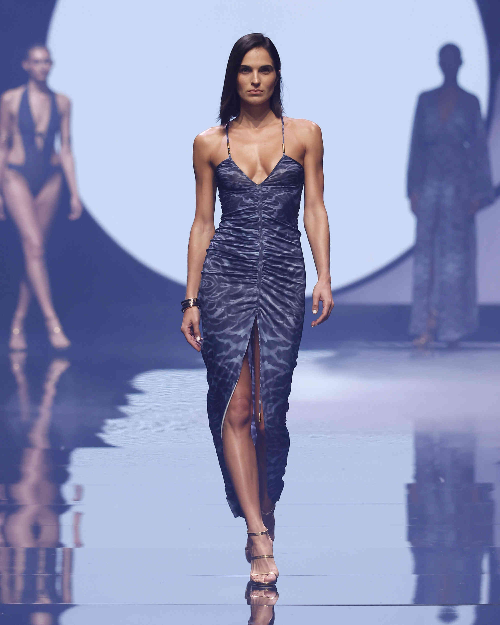 Carlos San Juan propone una Colección, envuelta en un halo de misterio y sensualidad. Diseñada para mujeres sexys y sofisticadas, esta Colección es una invitación irresistible a celebrar los días y las noches en los destinos más exclusivos del mundo. Prendas de vestir confeccionadas en tejidos de chiffon y jersey de viscosa, acarician la piel en cada movimiento. Cada prenda es una obra de arte, diseñada para abrazar y celebrar el cuerpo femenino, destacando su belleza y sensualidad de manera natural. Destaca el personalísimo estampado, que en contraste con las piezas metálicas doradas, crean una presencia sofisticada y atemporal. En esta Colección el color protagonista es el Gris Vulcano, que se muestra en tonos lisos o mezclándose sutilmente con el Verde Jade, el Azul Iris y el Rosa Mexicali.