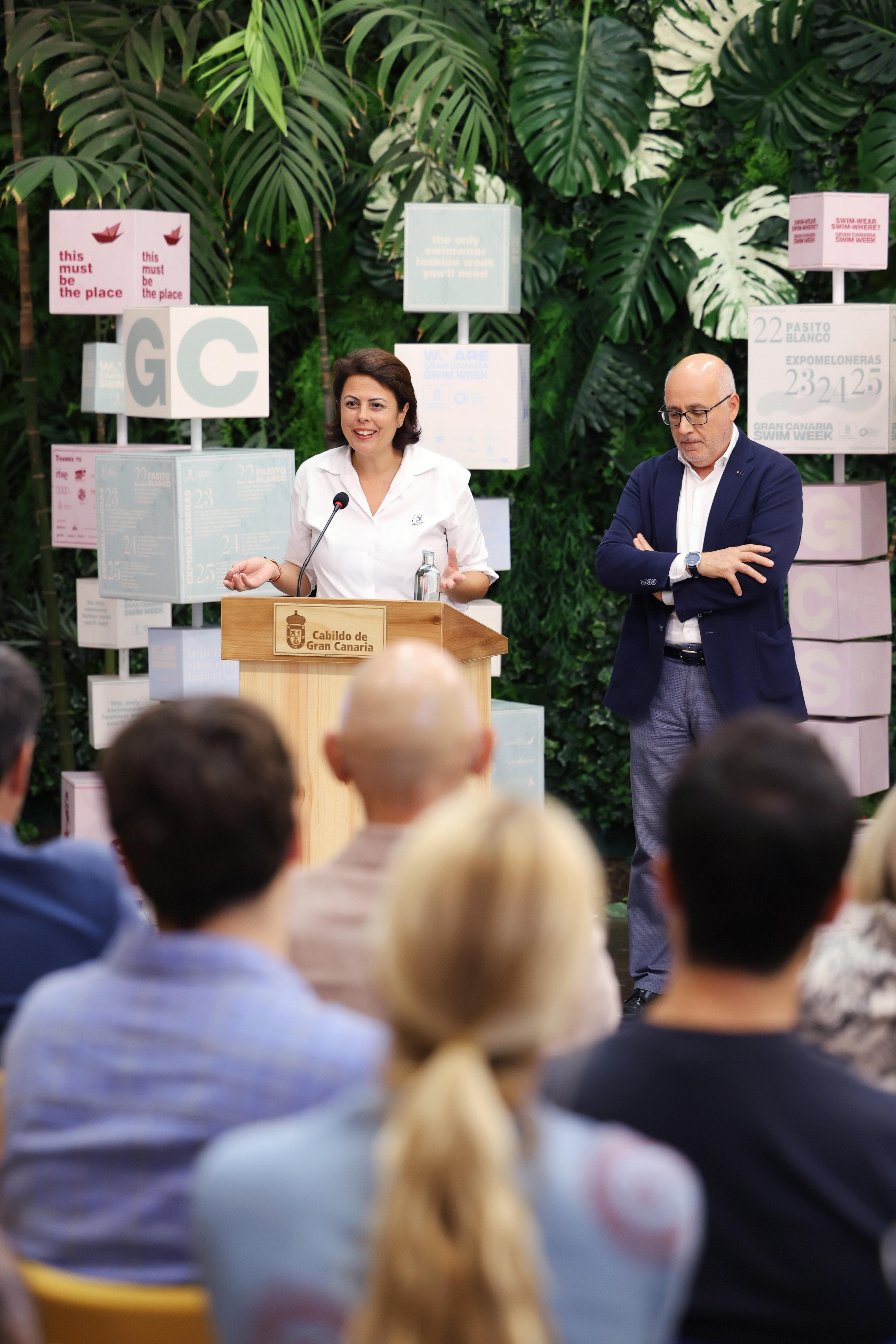 Las Palmas de Gran Canaria, 17 de octubre de 2025.- El Cabildo de Gran Canaria ha desvelado hoy las novedades de la nueva edición de Gran Canaria Swim Week, que dará comienzo el próximo 22 de octubre con una jornada de desfiles que tendrá lugar, una edición más, en el puerto deportivo Pasito Blanco, y en la que la top model internacional Karolina Kurkova, subirá a la pasarela para inaugurar esta XVII edición. Durante tres jornadas más, hasta el 25 de octubre, GCSW continuará en el recinto de Expomeloneras en Maspalomas. Las claves de GCSW 2025, líder europea en su categoría y referente internacional en moda baño, se han dado a conocer de la mano del presidente del Cabildo de Gran Canaria, Antonio Morales; y de la consejera de Desarrollo Económico, Minerva Alonso. Un acto de presentación que también ha contado con la presencia del presidente de la Asociación de Creadores de Moda de España- ACME, Modesto Lomba.