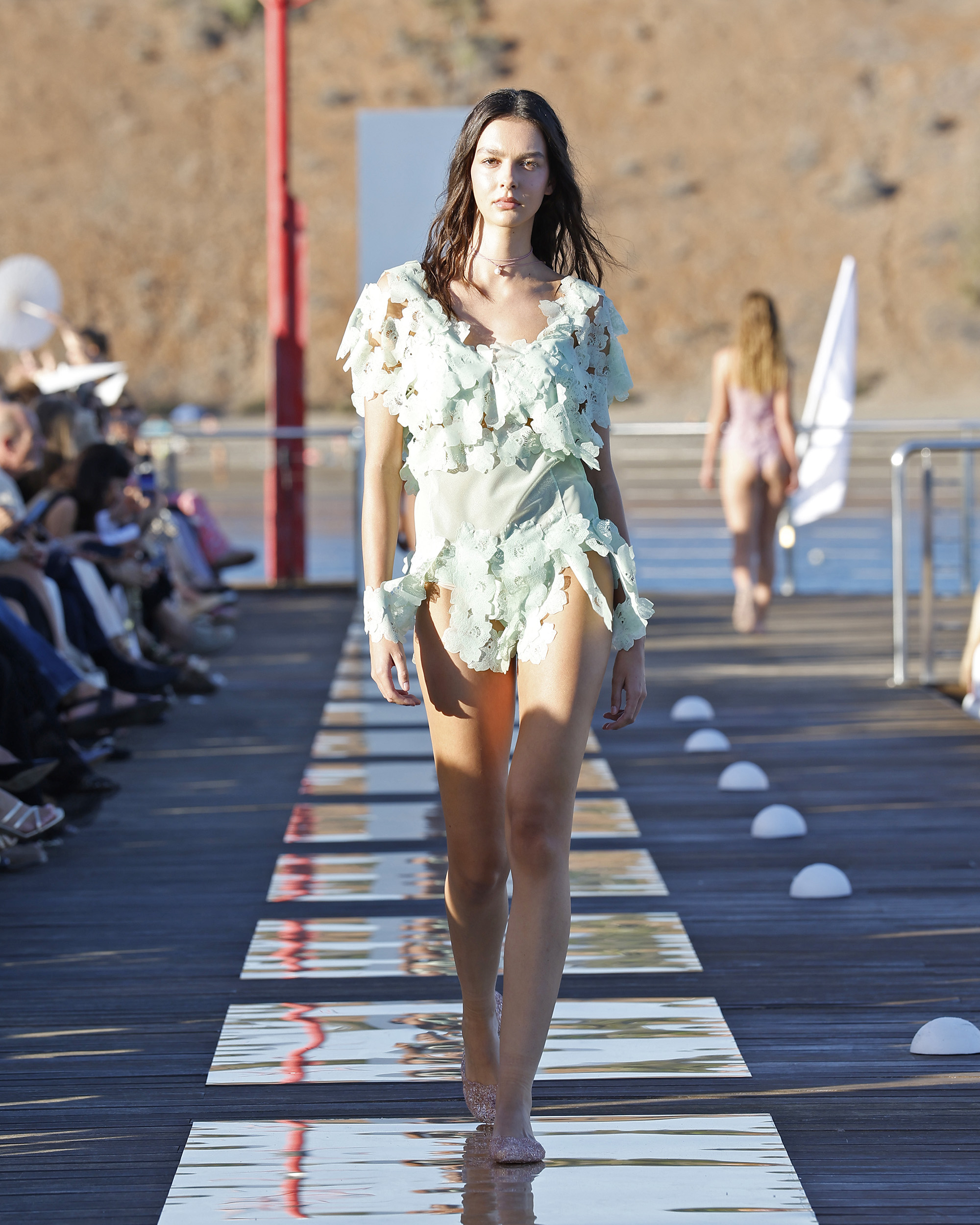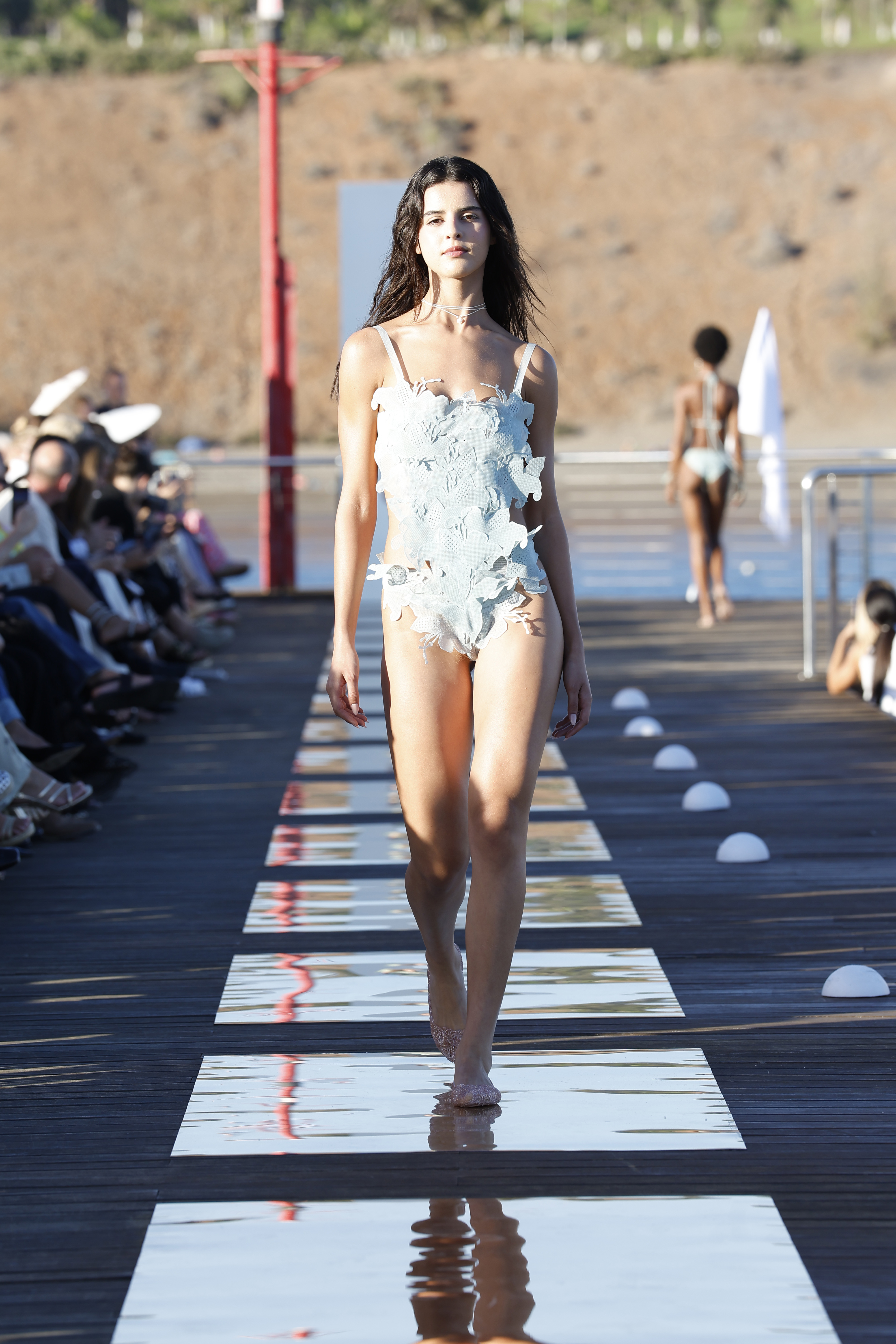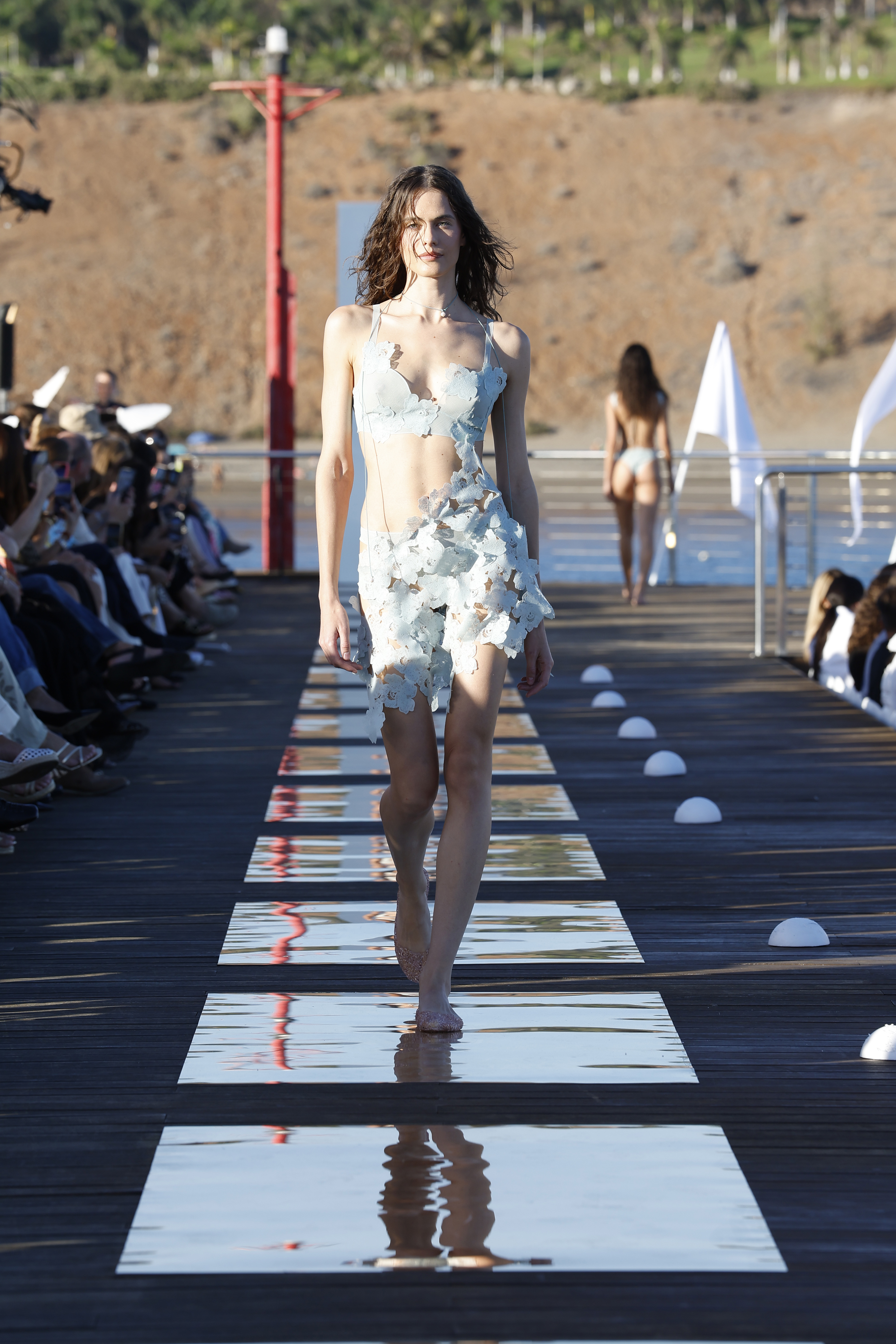 Joana Michaela presenta su primera colección crucero, Les Flors, una propuesta de baño vanguardista donde la artesanía y la tecnología conviven en un diálogo constante. Cada pieza está íntegramente confeccionada con tejidos impresos en 3D, explorando nuevas texturas que reinterpretan el encaje tradicional desde una mirada contemporánea