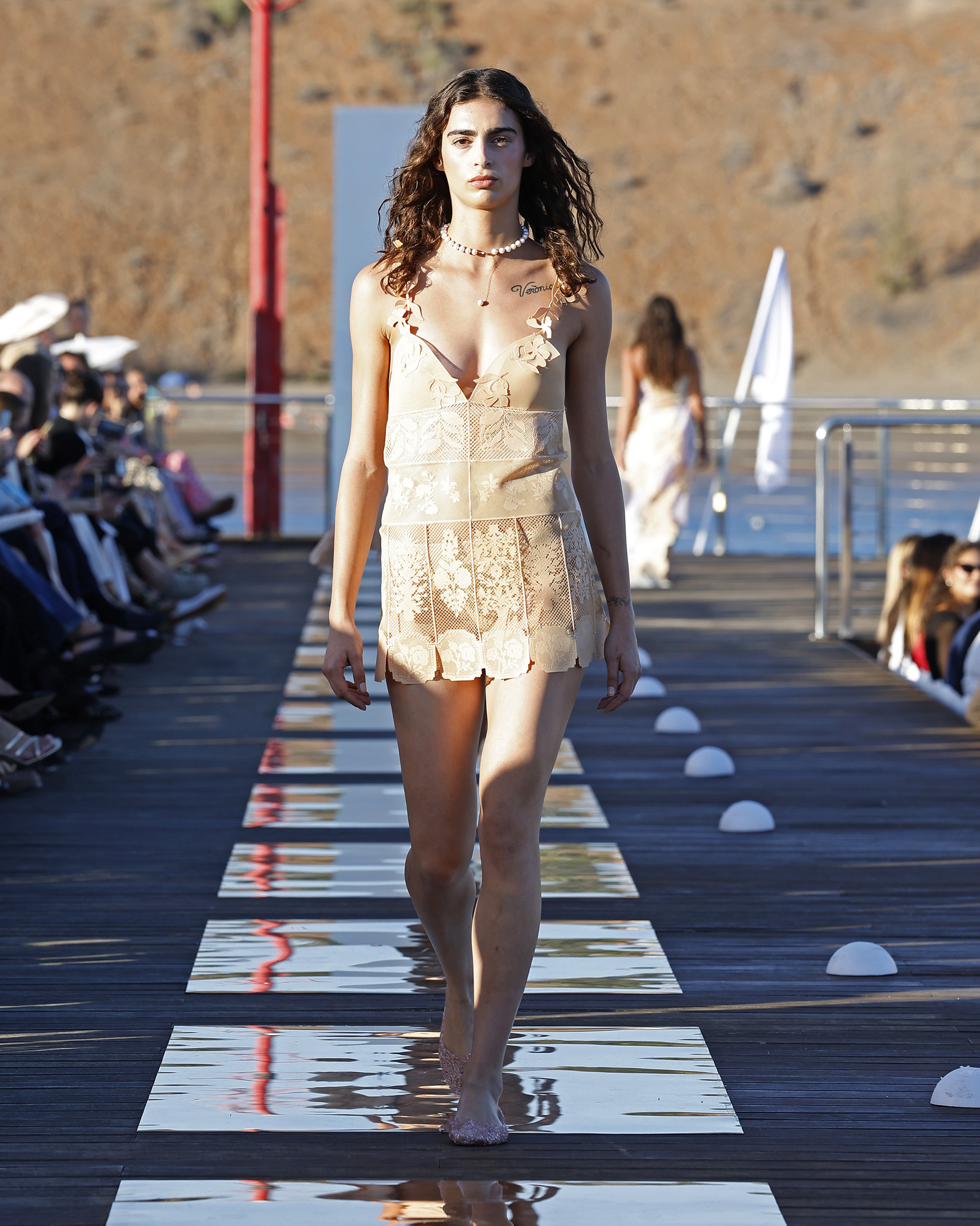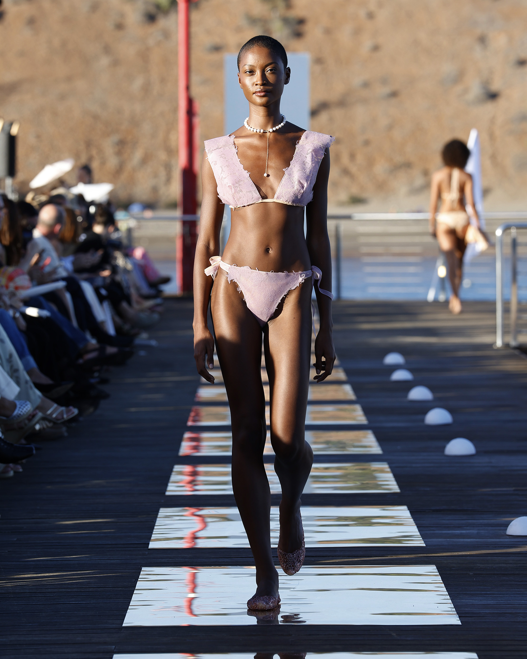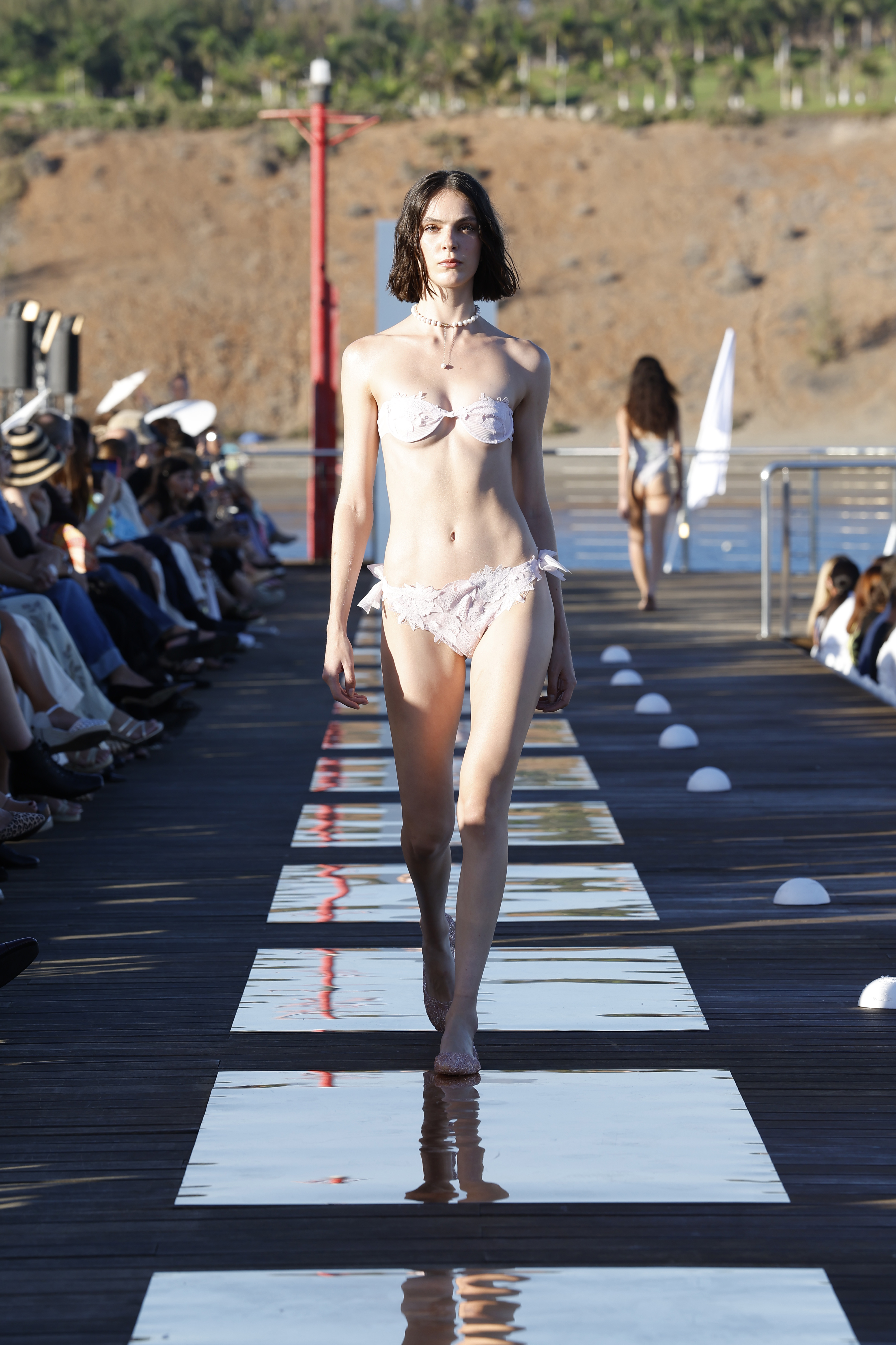 Joana Michaela presenta su primera colección crucero, Les Flors, una propuesta de baño vanguardista donde la artesanía y la tecnología conviven en un diálogo constante. Cada pieza está íntegramente confeccionada con tejidos impresos en 3D, explorando nuevas texturas que reinterpretan el encaje tradicional desde una mirada contemporánea