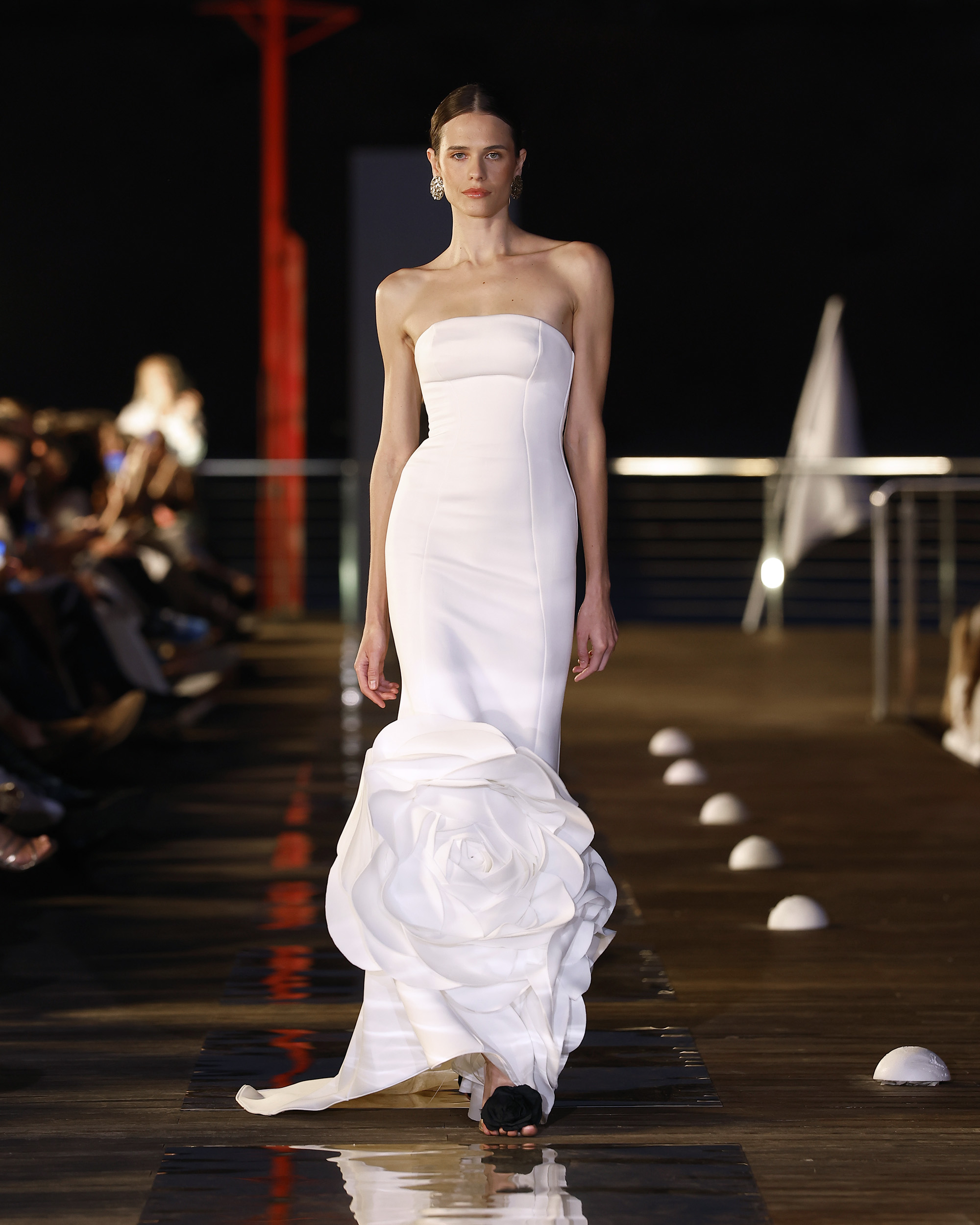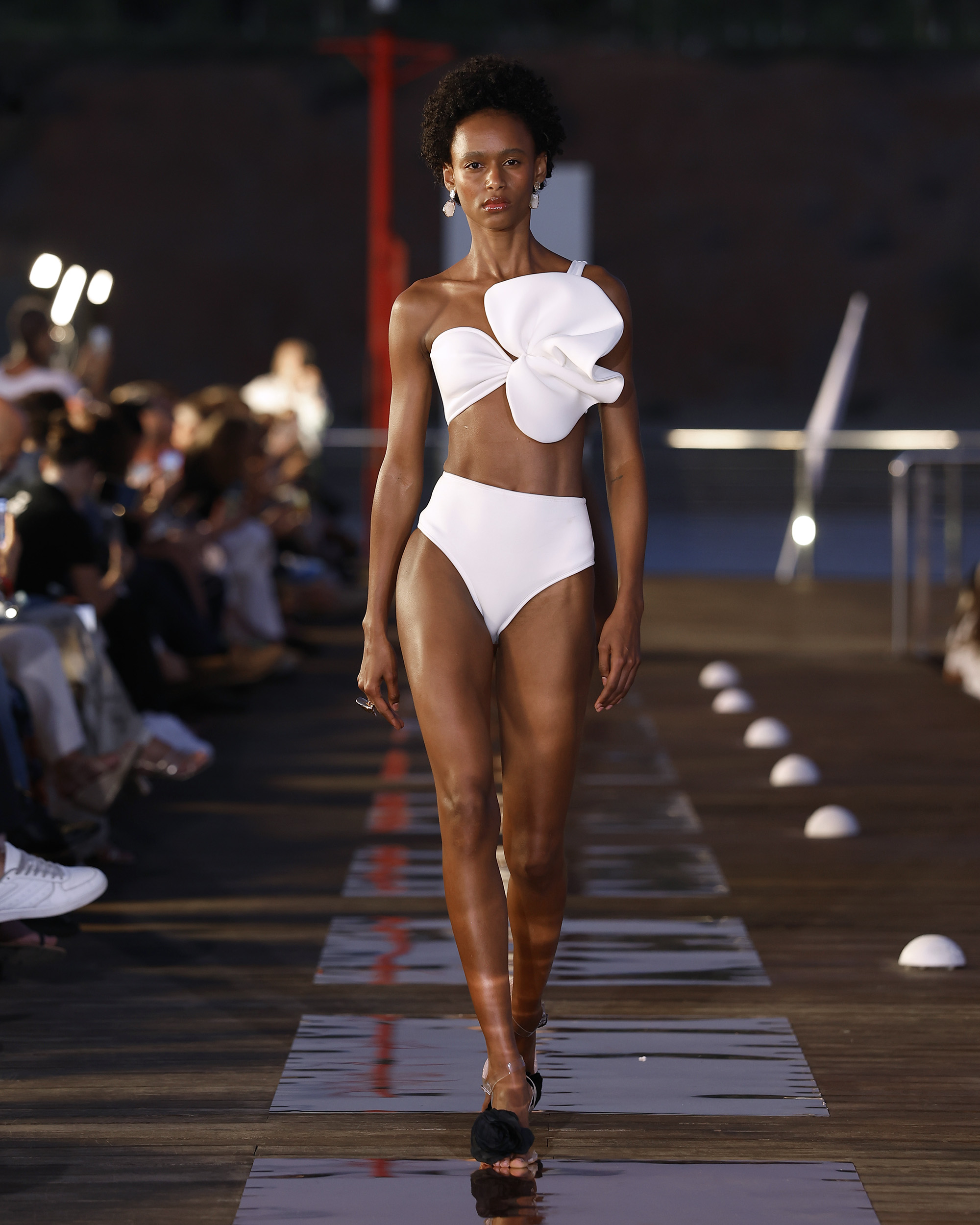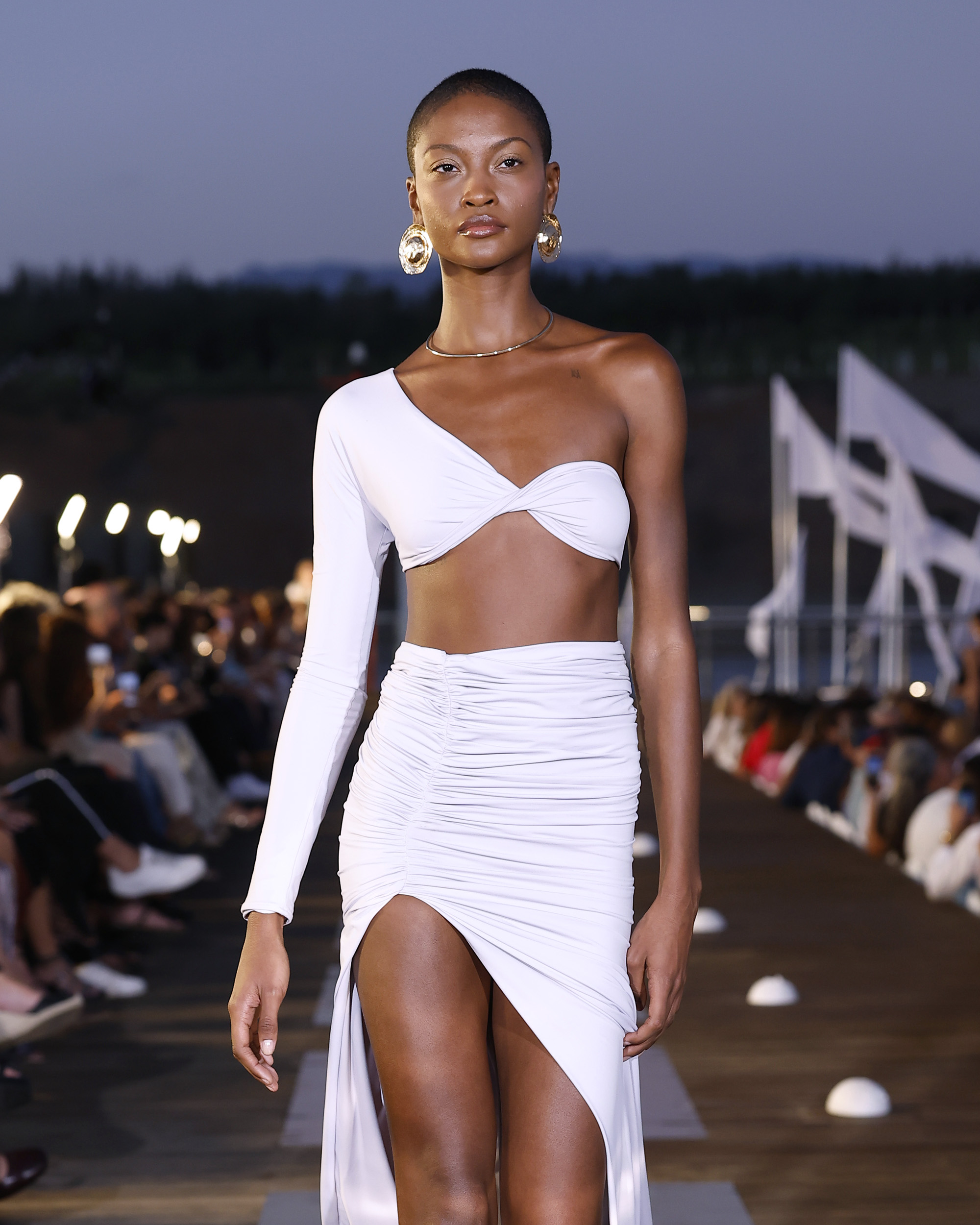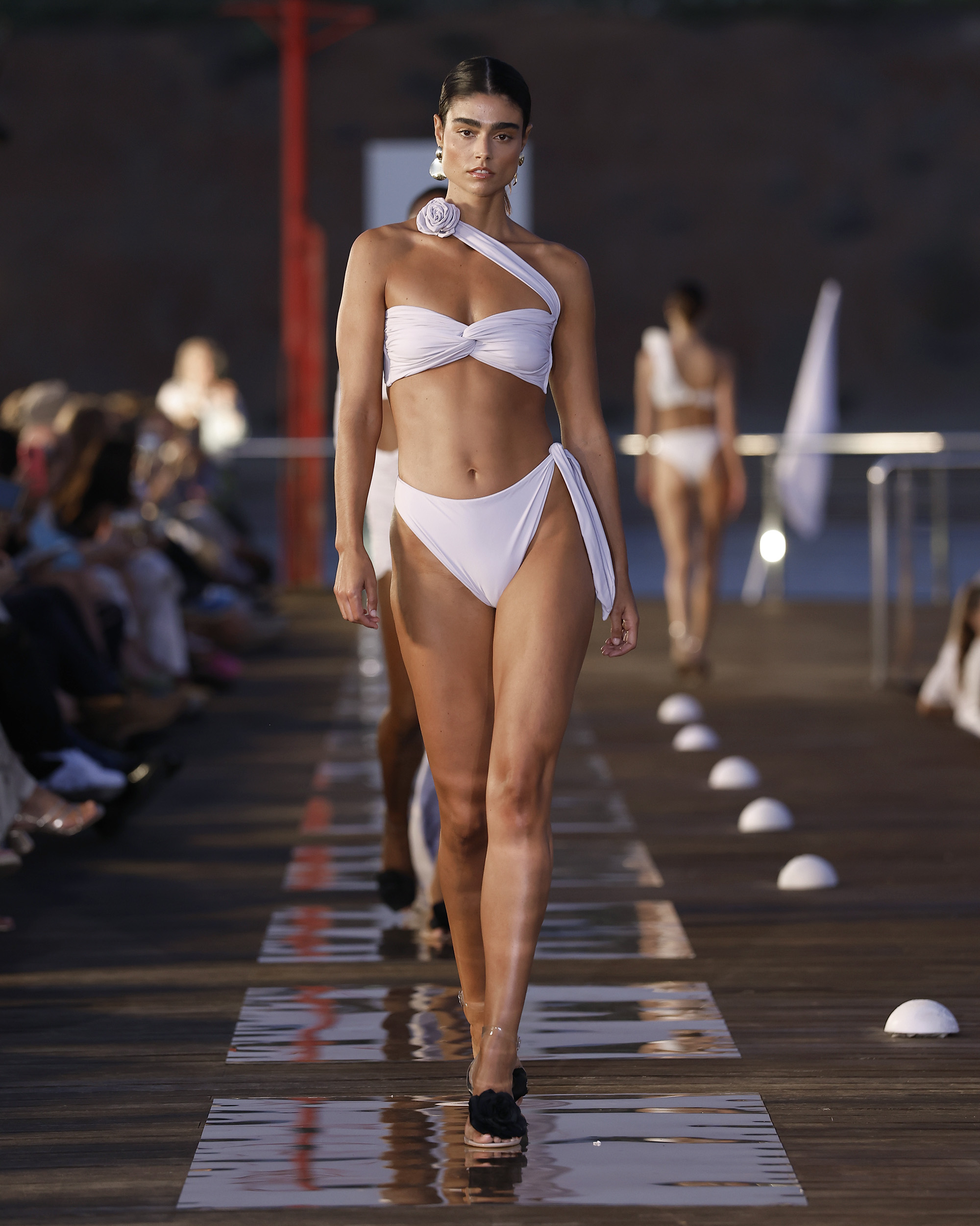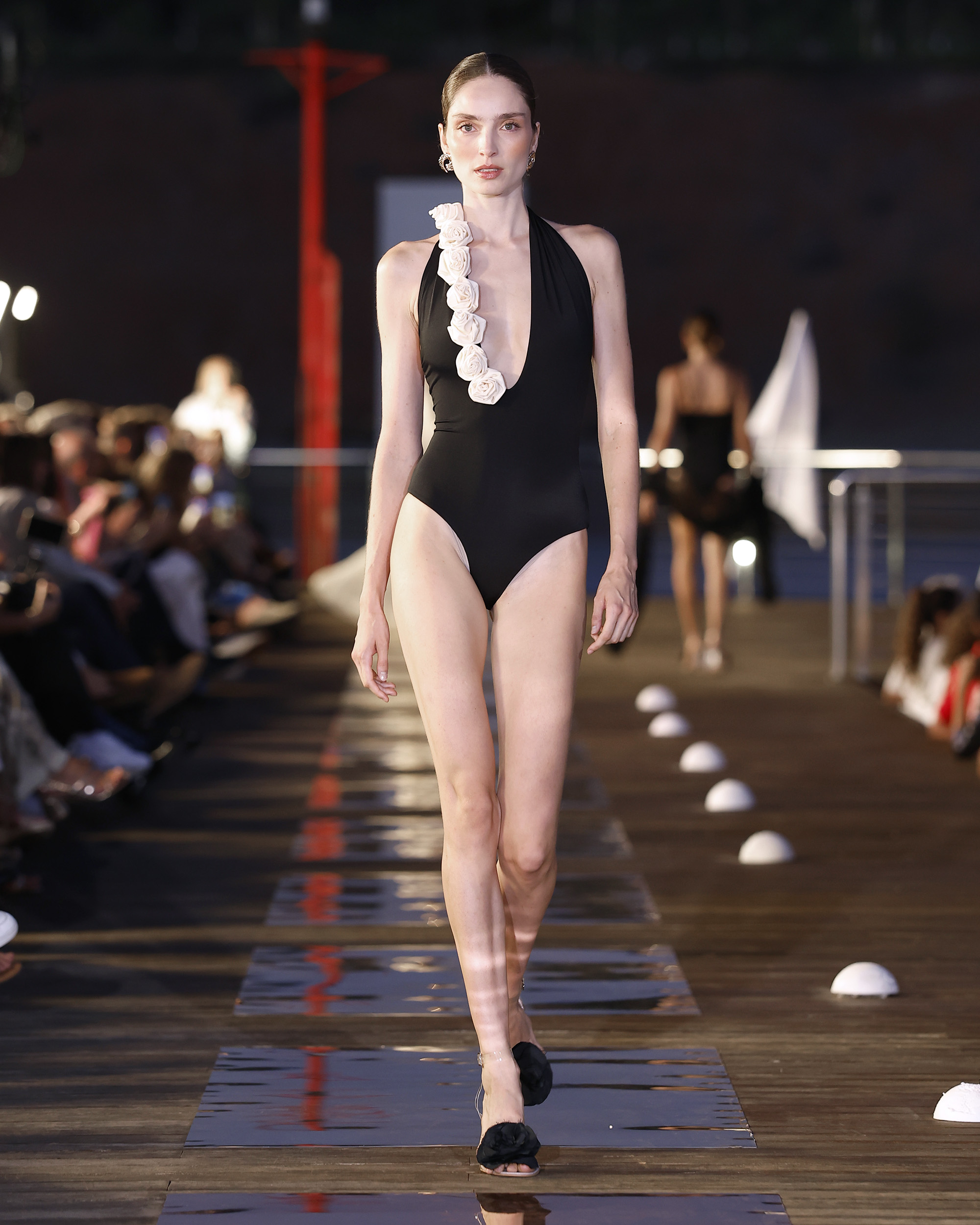 La diseñadora captura esta dualidad esencial —perfección y fragilidad, luz y sombra, mito y realidad— y la traduce en piezas que combinan siluetas minimalistas, detalles sutiles y una paleta atemporal: blancos luminosos, negros profundos, tonos perla y neutros.